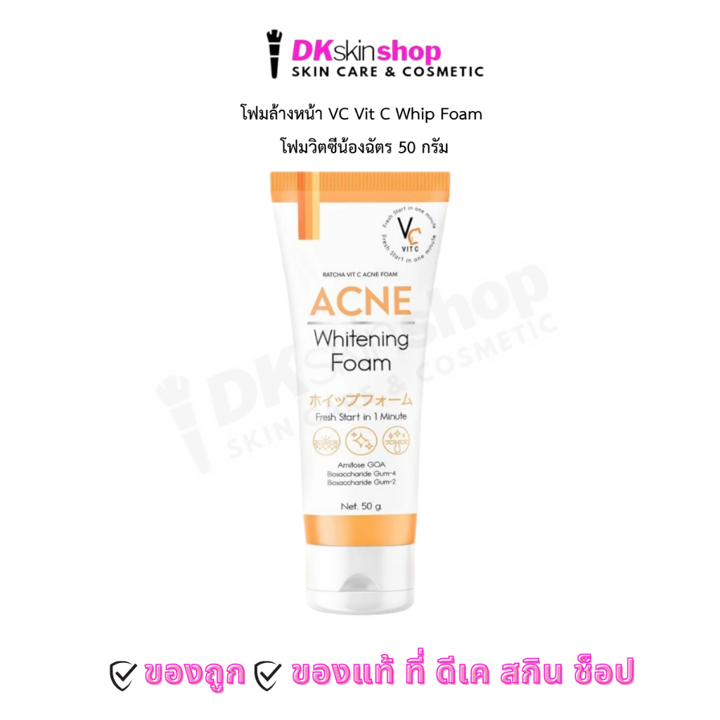 โฟมล้างหน้า VC Vit C Whip Foam โฟมวิตซีน้องฉัตร 50 กรัม