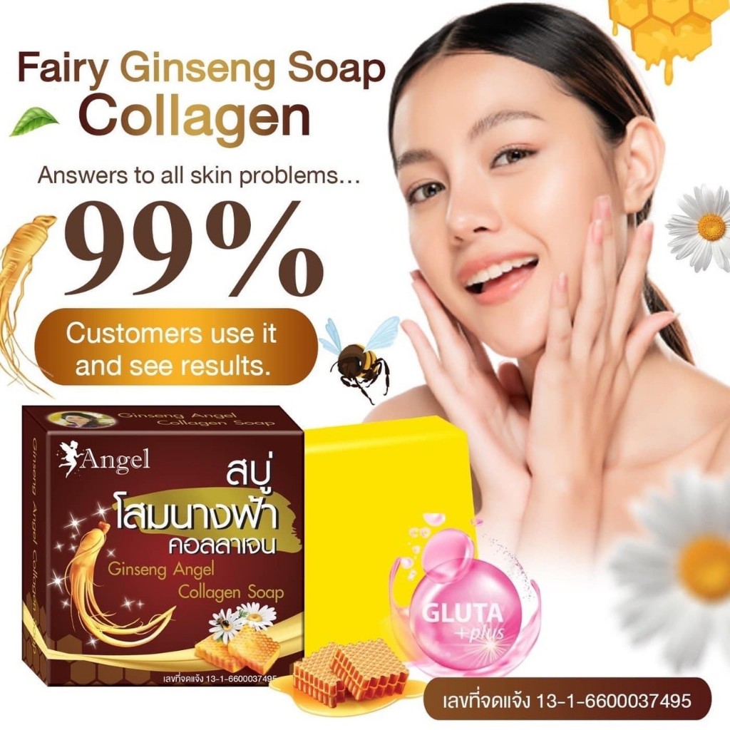 สบู่โสมนางฟ้า คอลลานเจน Ginseng Angel Collagen Soap [ แพ็คเกจใหม่ ] ขนาด 65 กรัม