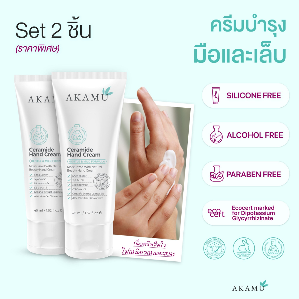 AKAMU Ceramide Hand Cream อากามุ เซรามายด์ แฮนด์:Set 2 ชิ้น/pcs ครีมบำรุงมือและเล็บเกรดพรีเมียม