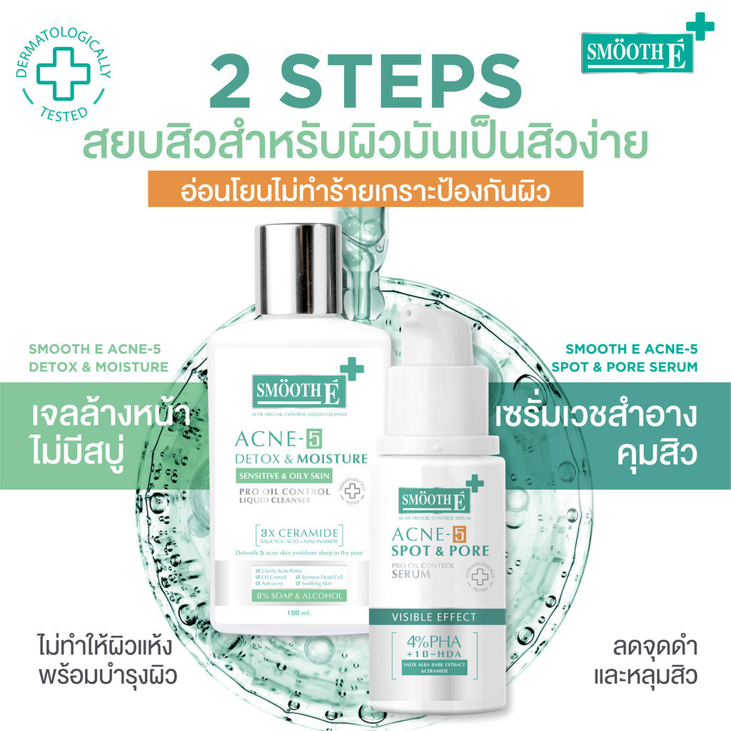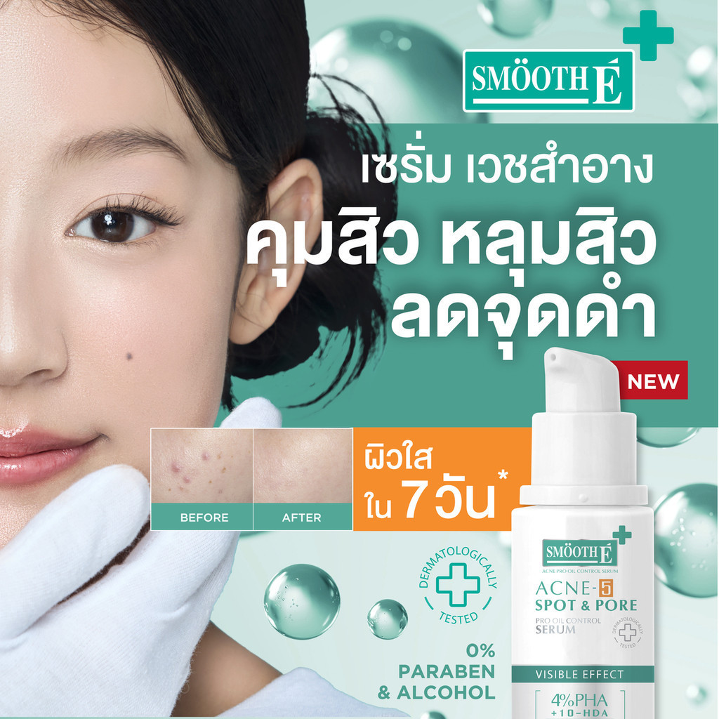 [ใหม่!] Smooth E Acne-5 SPOT & PORE SERUM 30 ml. เซรั่มสำหรับผิวเป็นสิว คุมมัน ลดสิว ปรับสมดุลผิว ลดจุดด่างดำ ลดรอยสิว