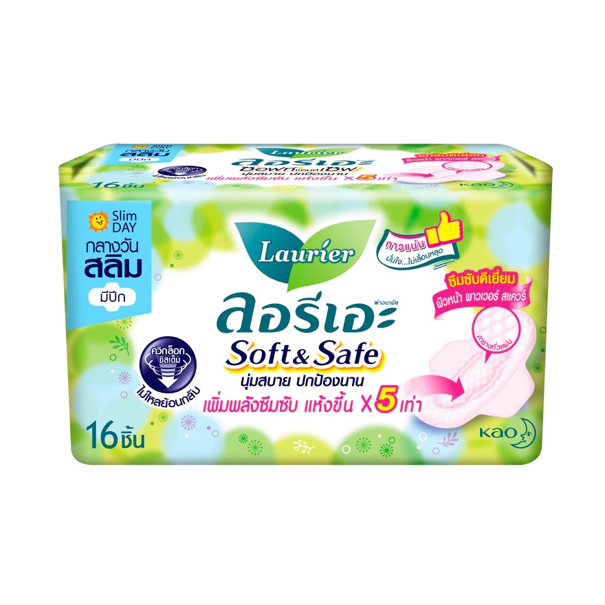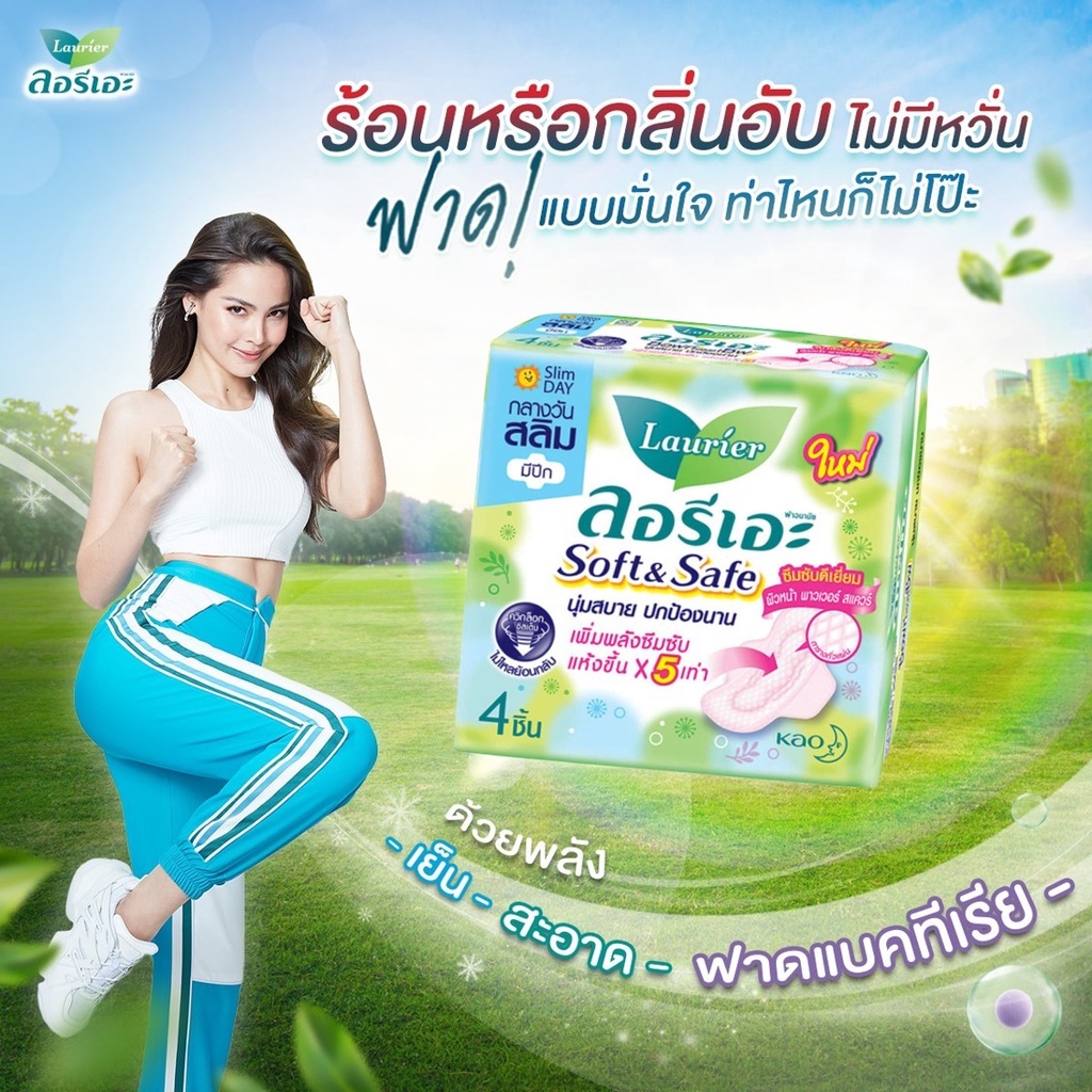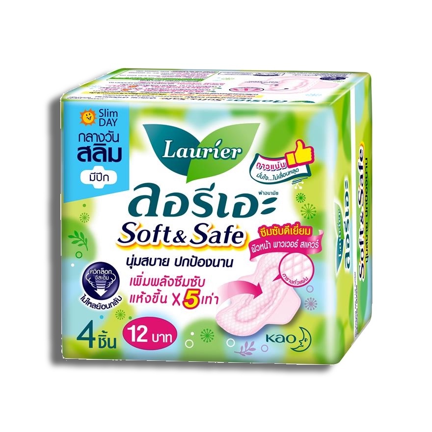 Laurier Soft & Safe ลอริเอะ ผ้าอนามัย แบบมีปีกและไม่มีปีก ลดกลิ่น นุ่มสบายปกป้องนาน แบบกลางวัน
