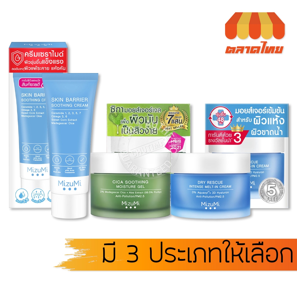 ครีมบำรุงผิว มิซึมิ MizuMi Cica Soothing Moisture Gel/ Dry Rescue Intense/ Barrier Soothing Cream 45g.