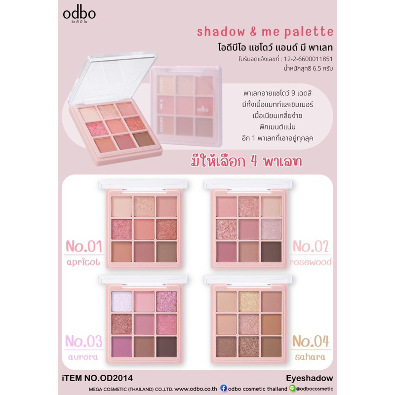 ODBO Shadow & Me Palette โอดีบีโอ แชโดว์ แอนด์ มี พาเลท OD2014 ขนาด 6.5g