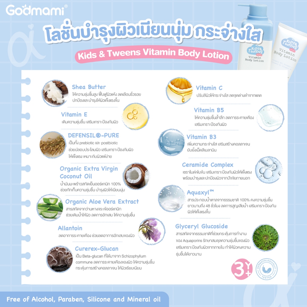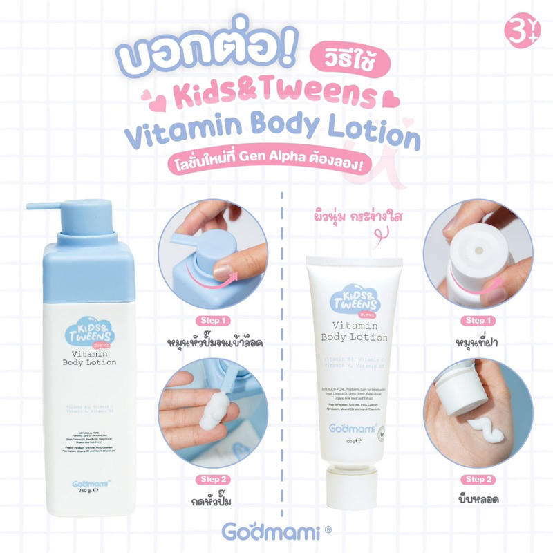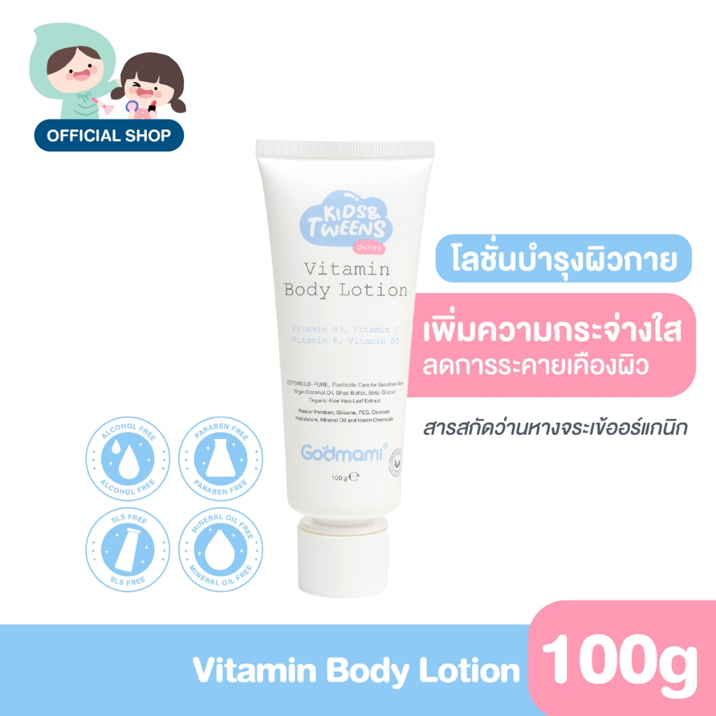 Godmami คืนผิวกระจ่างใสให้ลูก โลชั่นบำรุงผิวกายสูตรวิตามินผิวกระจ่ างใส สำหรับเด็กและวัยรุ่น