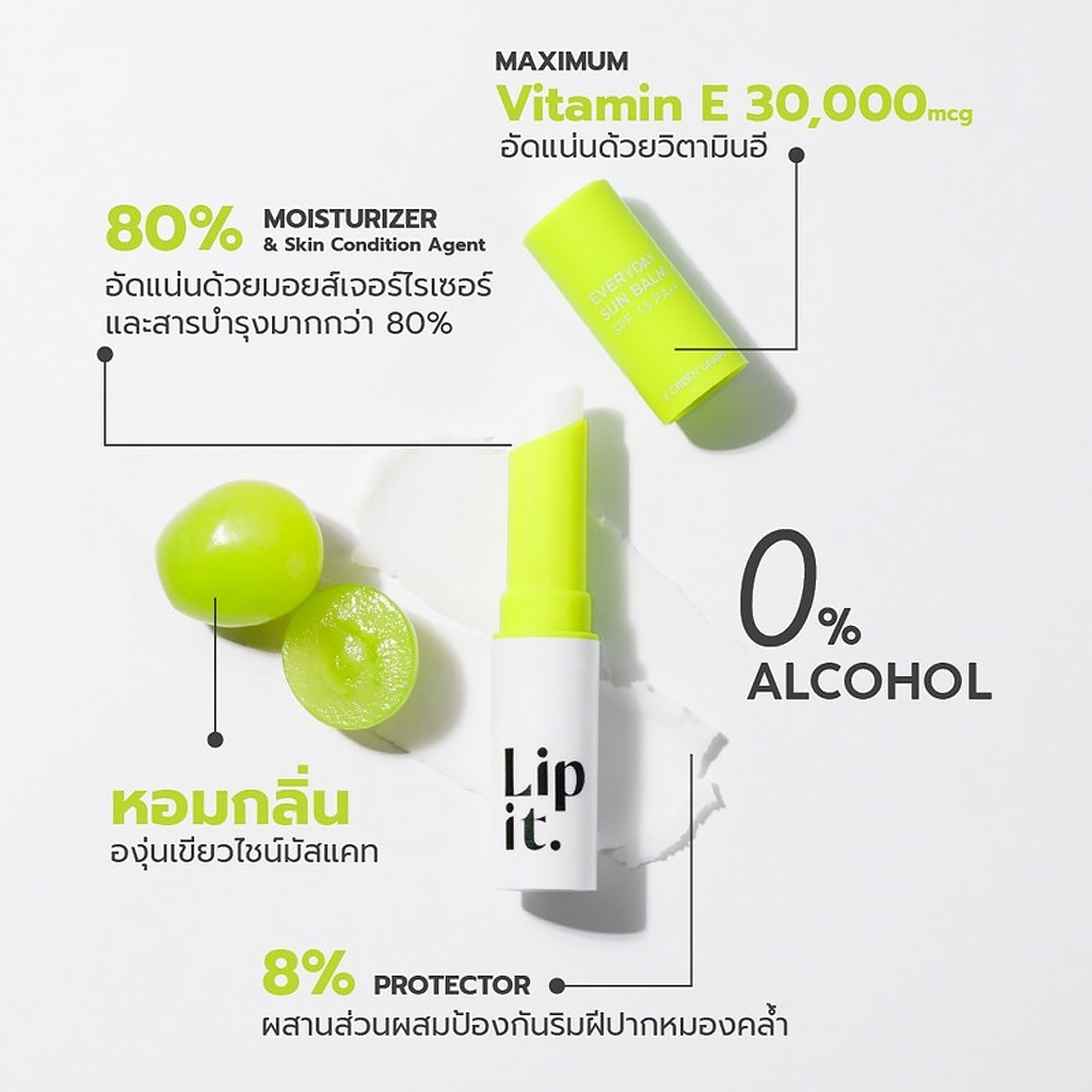 ลิปอิท ลิปบาล์มกันแดด ลิปทินท์ Lip It Tint Me Healthy Lip Balm / Everyday Sun Balm SPF50 PA++++ 3g.