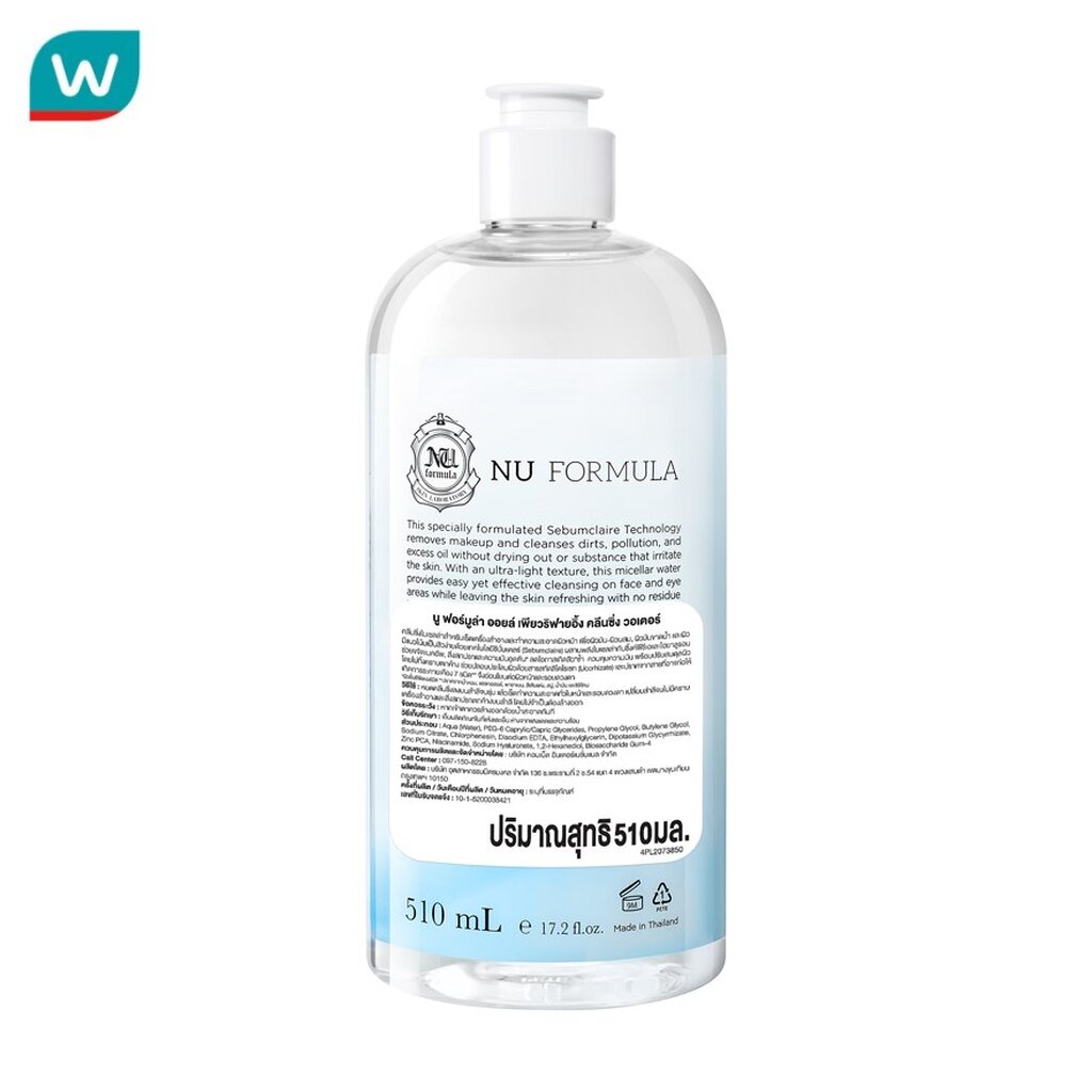 Nu Formula นู ฟอร์มูล่า ออยล์ เพียวริฟายอิ้ง คลีนซิ่ง วอเตอร์ 510 มล.