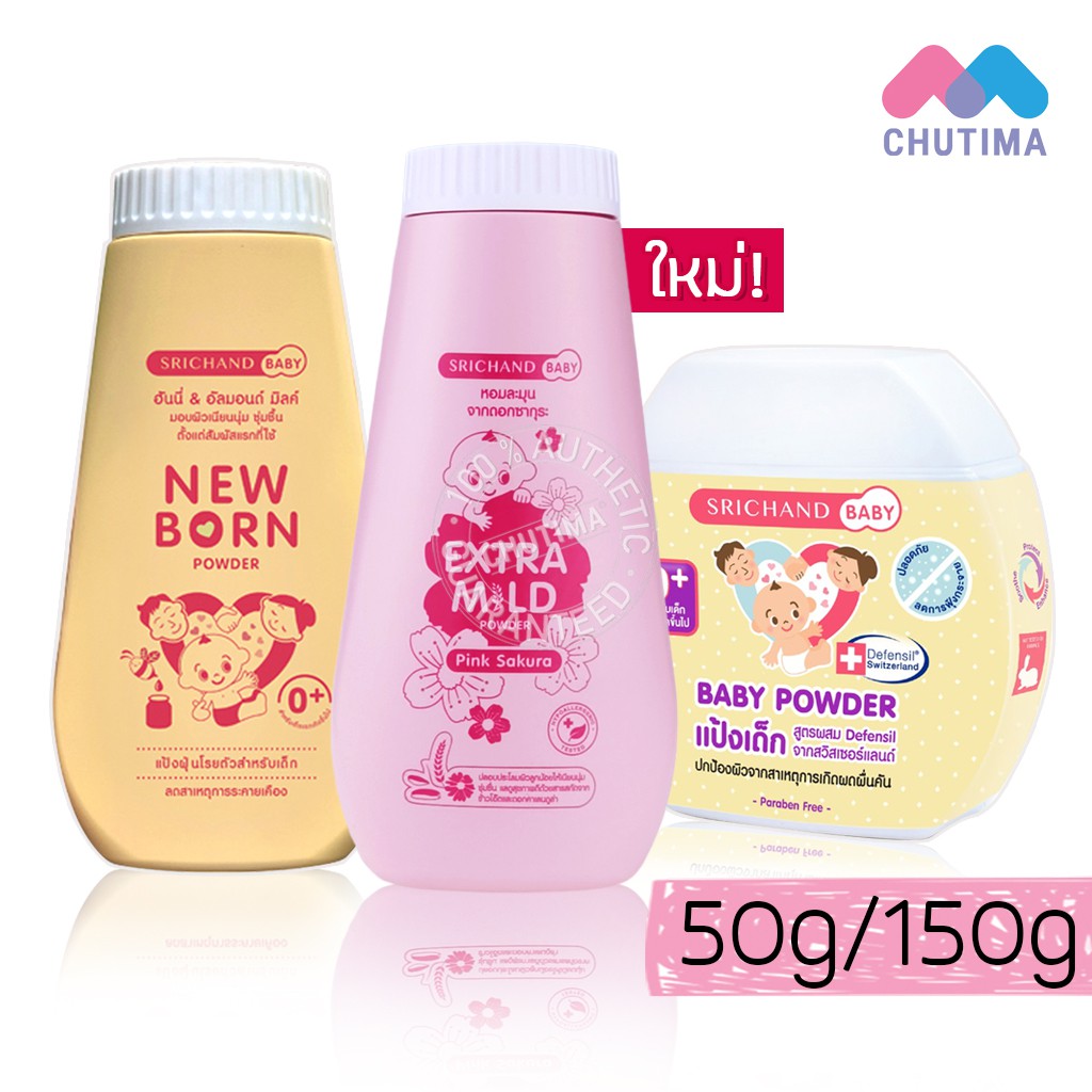 👶แป้งเด็ก ศรีจันทร์ เบบี้พาวเดอร์/นิวบอร์น/เอ็กซ์ตร้า มายด์ Srichand Baby Powder / New Born Powder 50/150 g