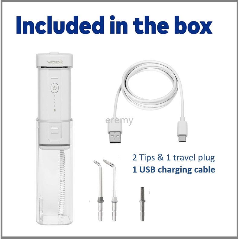 Waterpik GS7 เครื่องพ่นน้ําไร้สาย แบบพกพา พับได้ พร้อมกระเป๋า และปลาย 4 ชิ้น ชาร์จได้ กันน้ํา