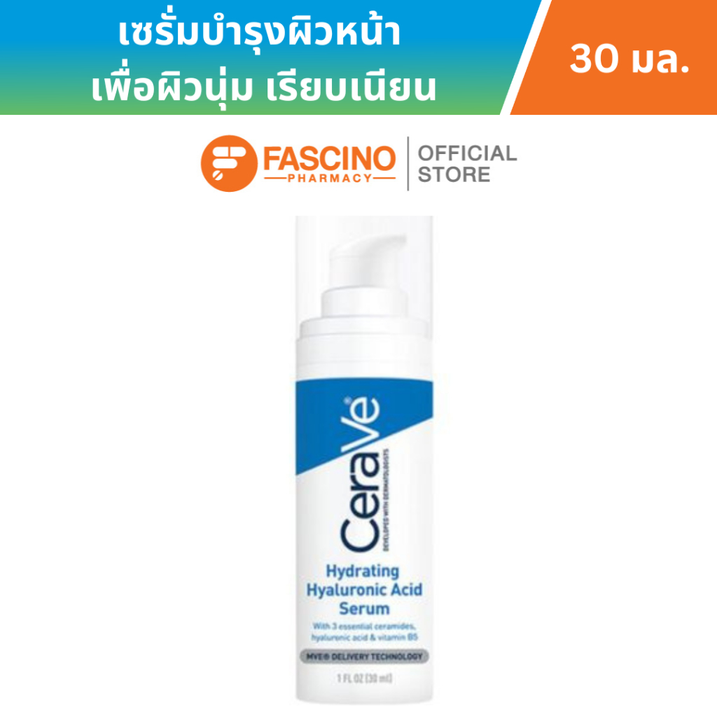 (หมดเเล้วหมดเลย) CeraVe Hydrating Hyaluronic Acid Serum เซรั่มบำรุงผิวหน้า เพื่อผิวนุ่ม เรียบเนียน (30 มล.)
