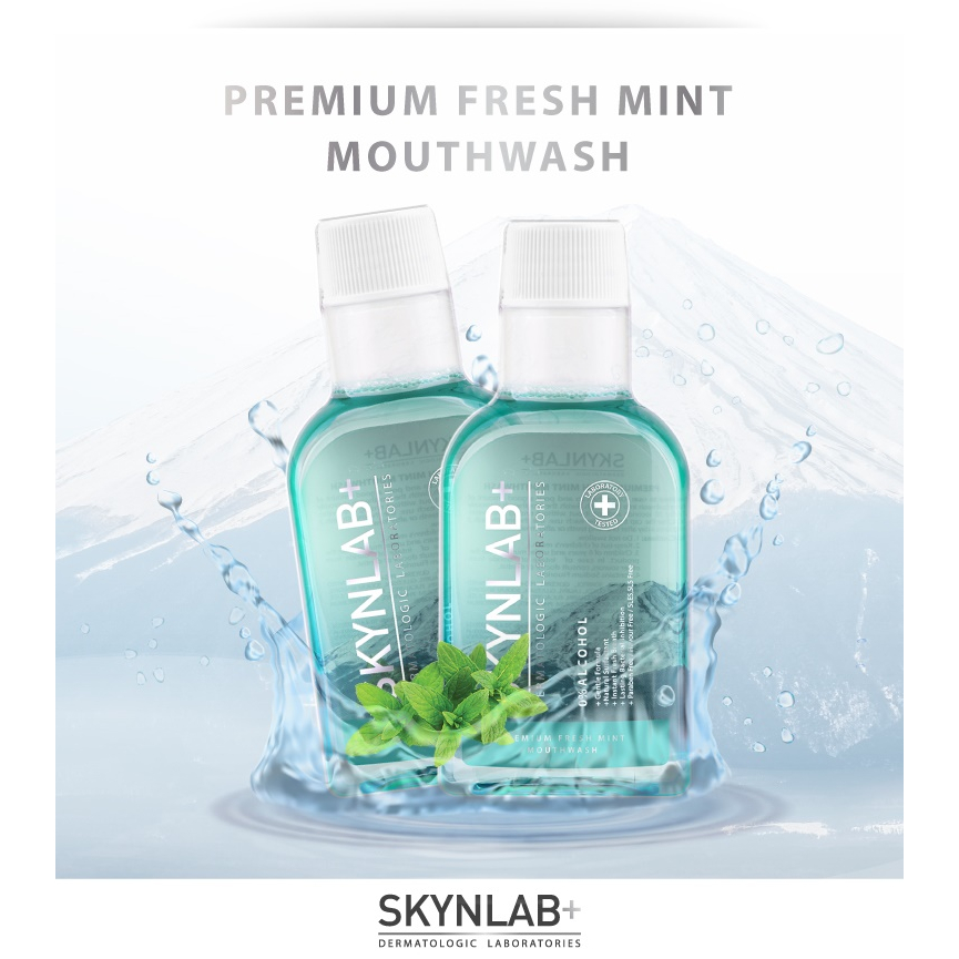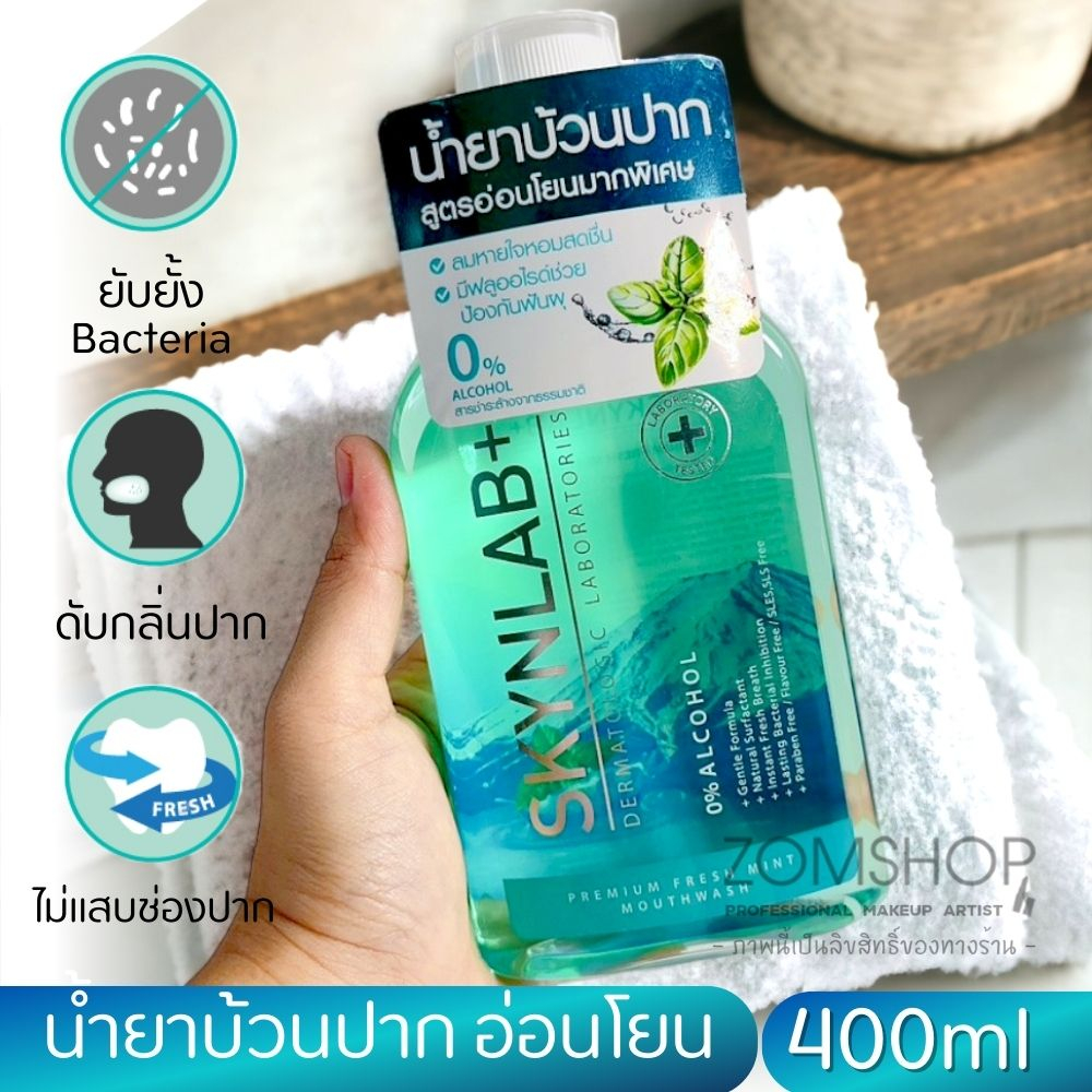 สีเขียว【ขวดใหญ่400ml.】Skynlab 【น้ำยาบ้วนปาก】ลดกลิ่นปาก Skynlab Premium Fresh Mint Mouthwash
