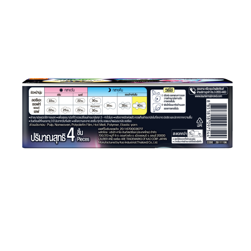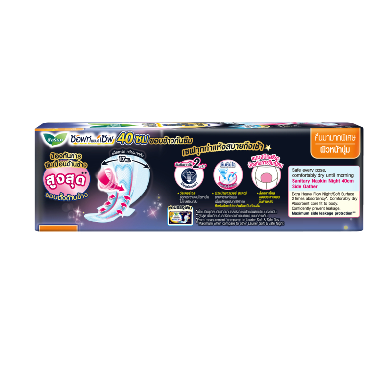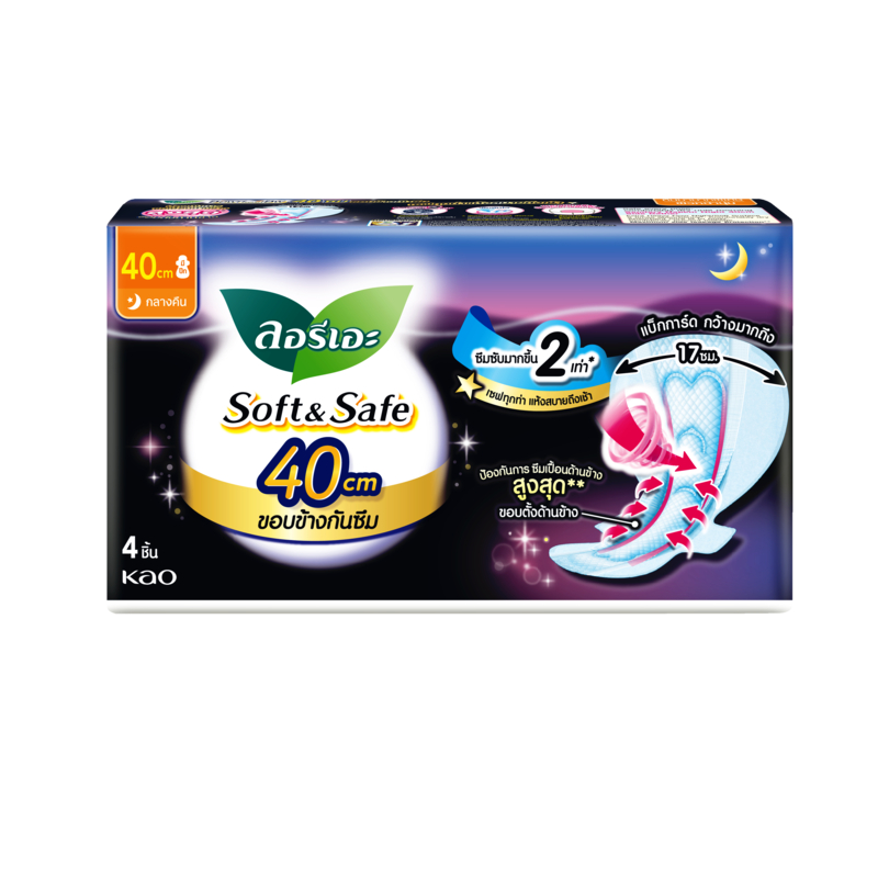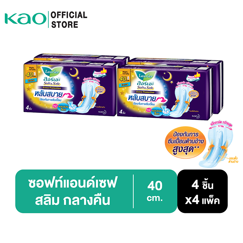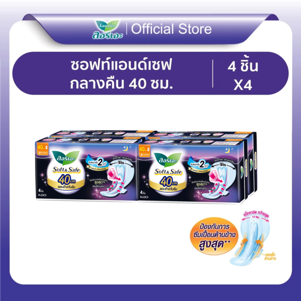 ลอรีเอะ ซอฟท์แอนด์เซฟ กลางคืน 40 ซม. ห่อ 4 ชิ้นx4 แพ็ค LAURIER SOFT&SAFE EXTRA PROTECTION NIGHT 40 CM. (4pc x 4packs)
