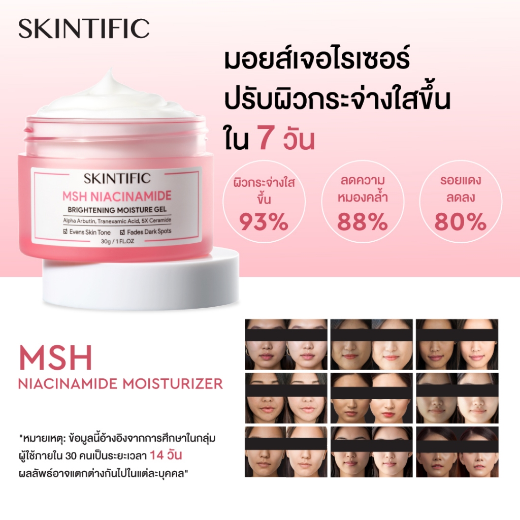 【BIG SIZE】SKINTIFIC MSH NIACINAMIDE BRIGHTENING MOISTURIZER 80G ไนอาซินาไมด์ ครีมทากลางวัน-กลางคืน จุดด่างดำจางลง ผิวกระจ่างใส เนื้อบางเบา ไม่ทำให้ผิวมัน