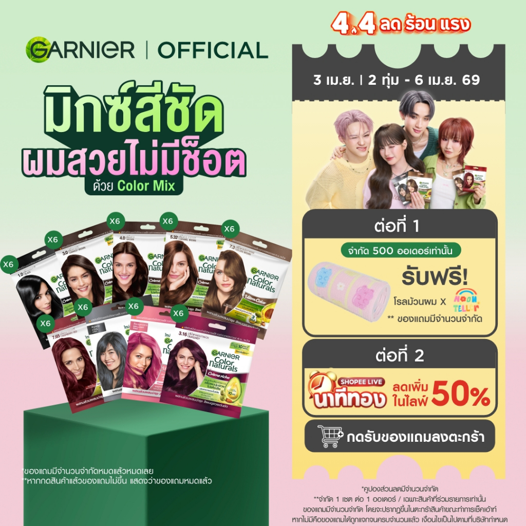 [แถมโรลม้วนผม!เพียงชิ้นละ43.-ในไลฟ์] การ์นิเย่ คัลเลอร์ แนทเชอรัลส์ x6 | Garnier Color Naturals x6 (สีผม,ย้อมผม,Garnier