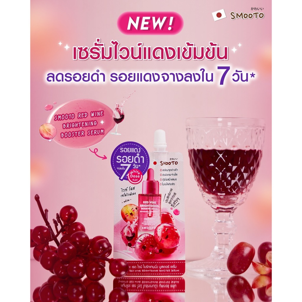 (6ซอง/กล่อง) Smooto สมูทโตะ เรด ไวน์ ไบร์ทเทนนิ่ง บูสเตอร์ เซรั่ม เซรั่มไวน์แดง (3994)