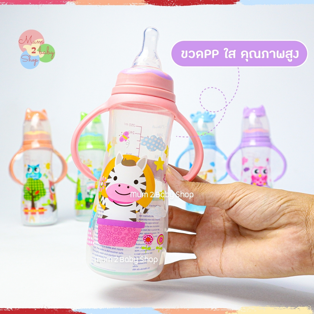 Babi care ขวดนมคอแคบพร้อมแขนจับ BPA FREE เบบี้แคร์ 4ออนซ์,8ออนซ์ รุ่นซาฟารี