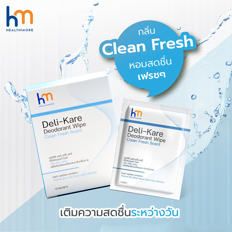HEALTHIMORE Deli-Kare Deodorant Wipe Clean Fresh Scent 10 Sachets ผลิตภัณฑ์ลดเหงื่อและระงับกลิ่นกาย กลิ่นคลีน เฟรช.