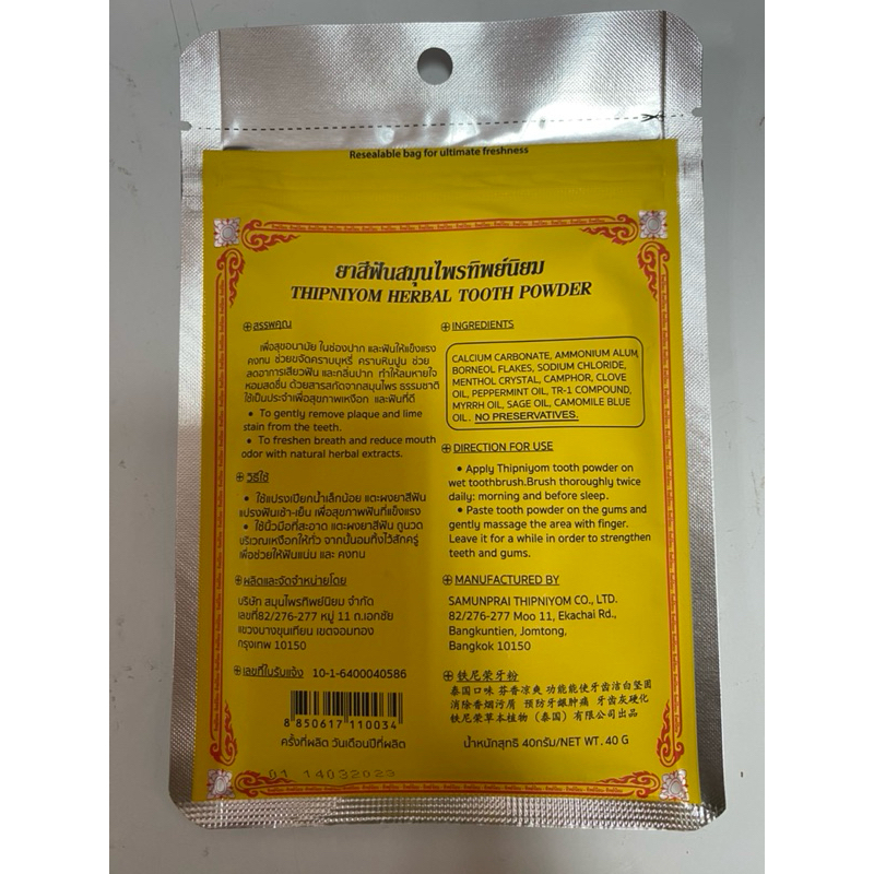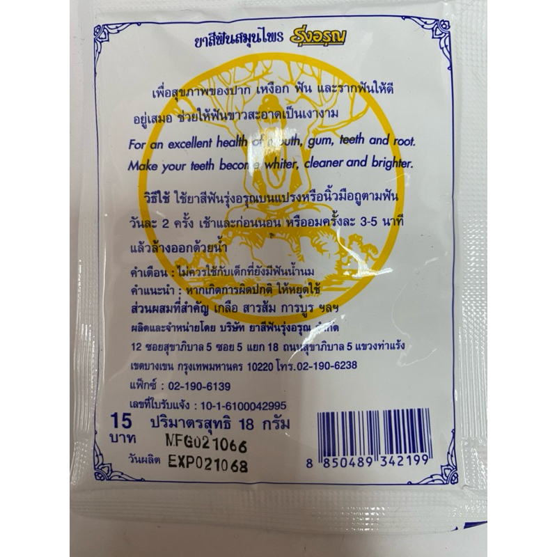 ยาสีฟันสมุนไพร วิเศษนิยม ทิพย์นิยม รุ่งอรุณ ตำรับโบราณ ชนิดซอง