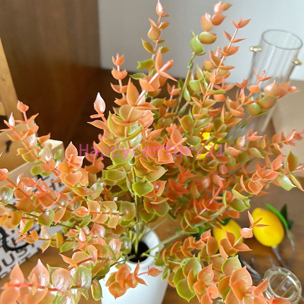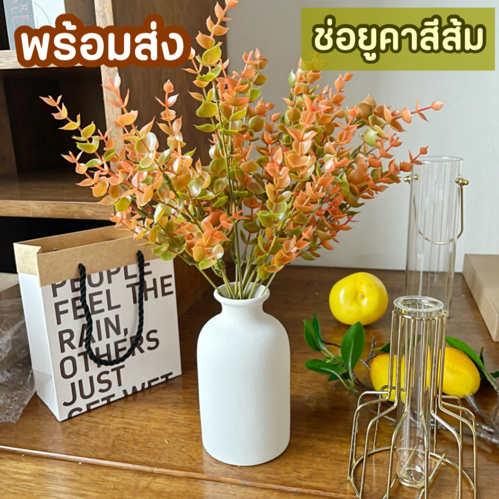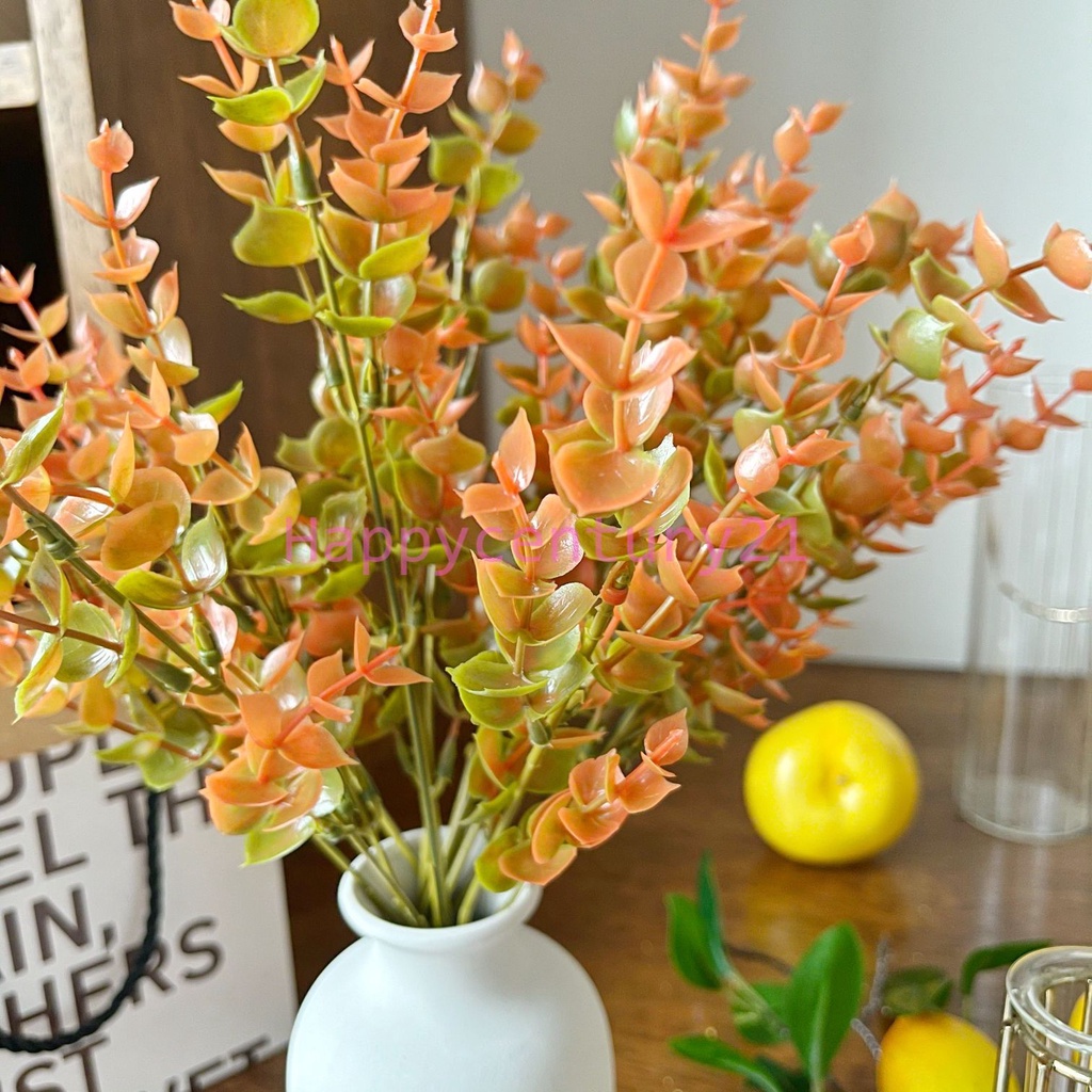ส่งด่วน ใบไม้ปลอม ใบไม้สีส้ม ช่อใบไม้ ช่อยูคา ยูคาลิปตัส พรอพถ่ายรูป ของตกแต่งบ้าน ช่อใบยูคา ช่อใบไม้มินิมอล