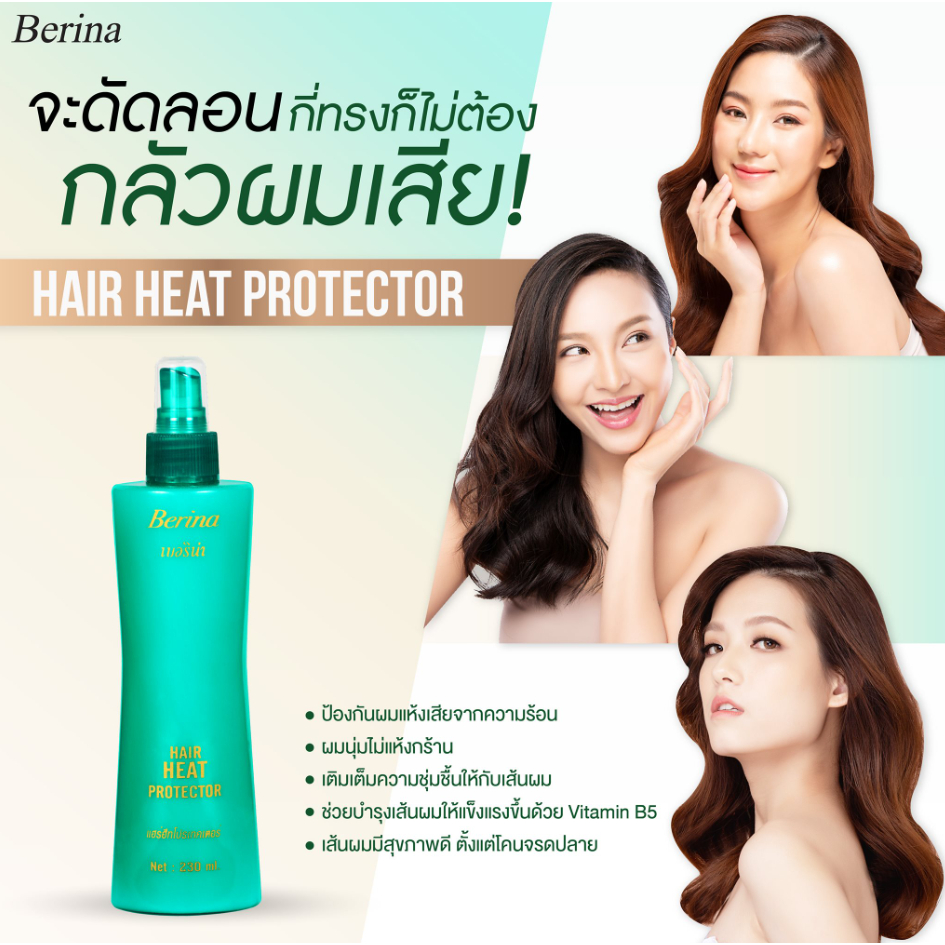 (230ml.) Berina เบอริน่า เเฮร์ ฮีท โปรเทคเตอร์ สเปรย์ กันความร้อน (ขวดเขียว) [0043]