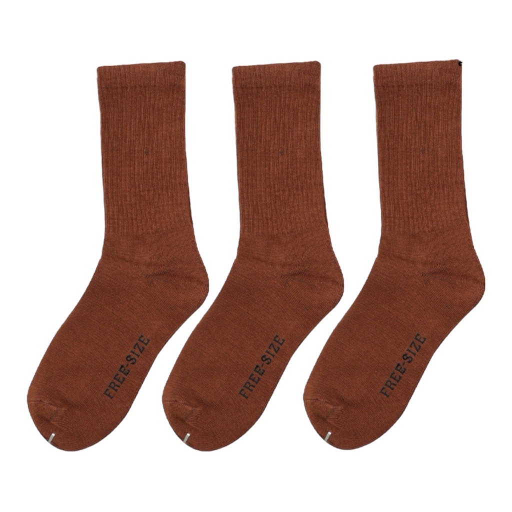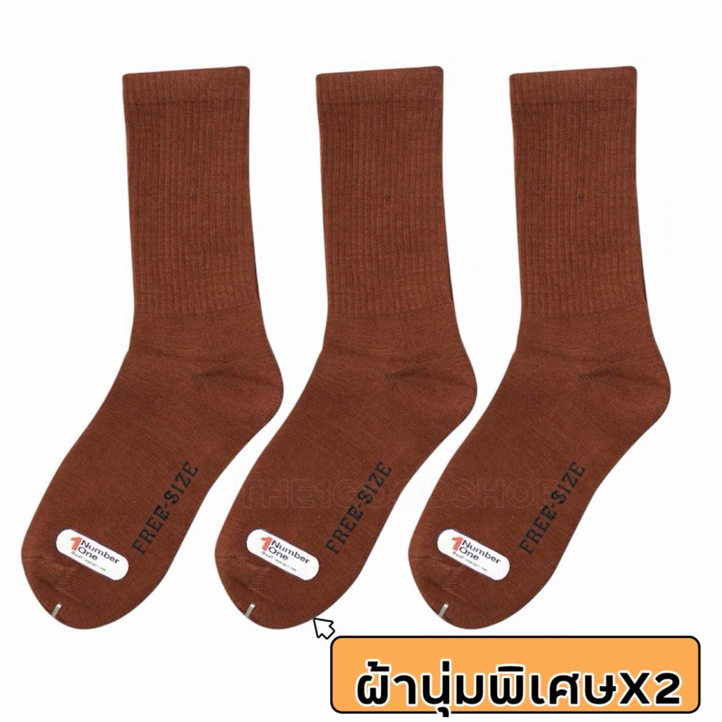 [แพ็ค 4 คู่] ถุงเท้านักเรียน ข้อยาว สีขาวพื้นเทา / น้ำตาล ขนาดฟรีไซส์ 36-44
