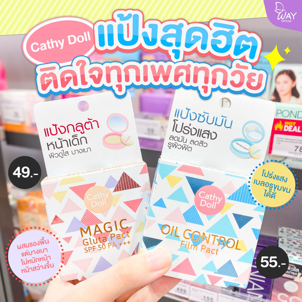 เคที่ดอลล์ ออยล์คอนโทรล ฟิล์ม แพ็ค ทรานสลูเซนต์ 4.5g Cathy Doll Oil Control Film Pact 4.5g