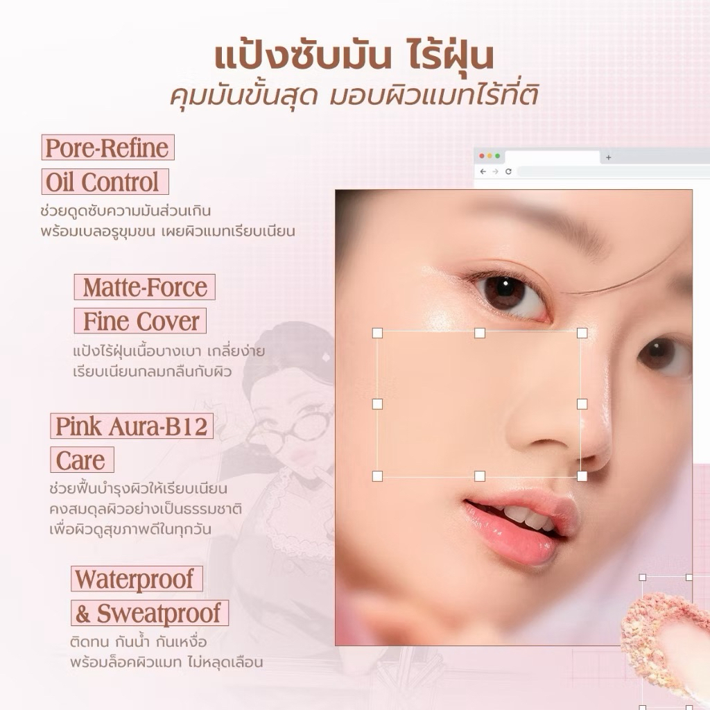 bnb แป้งไร้ฝุ่น barenbliss Bloomatte Fine to Refine Compact Powder 05 PINK MABLE เบลอรูขุมขน คุมมัน ซับความมัน