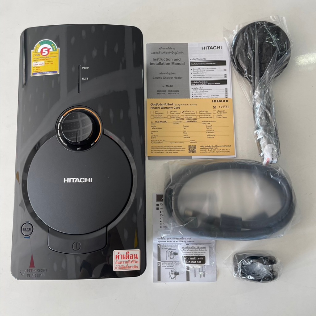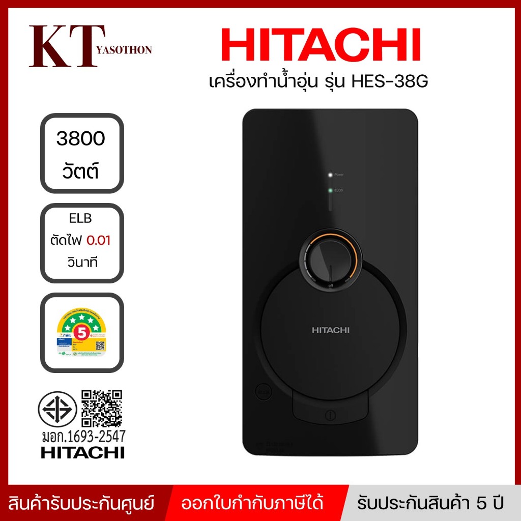 ฮิตาชิ เครื่องทำน้ำอุ่น ไฟฟ้า รุ่น HES-38G ขนาด 3800 วัตต์ สีดำ