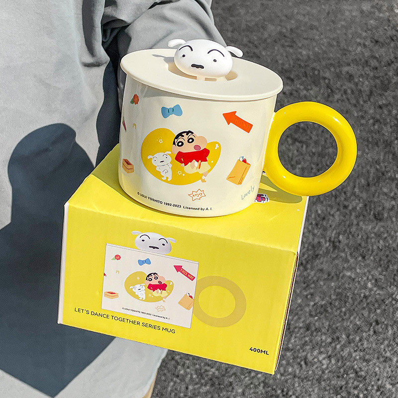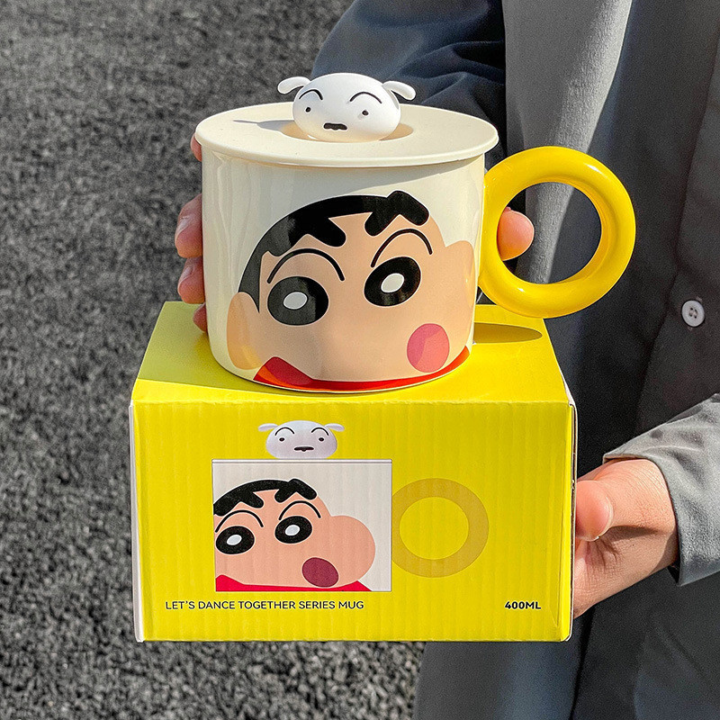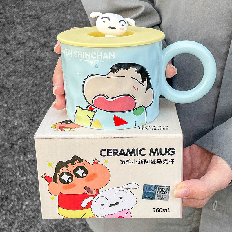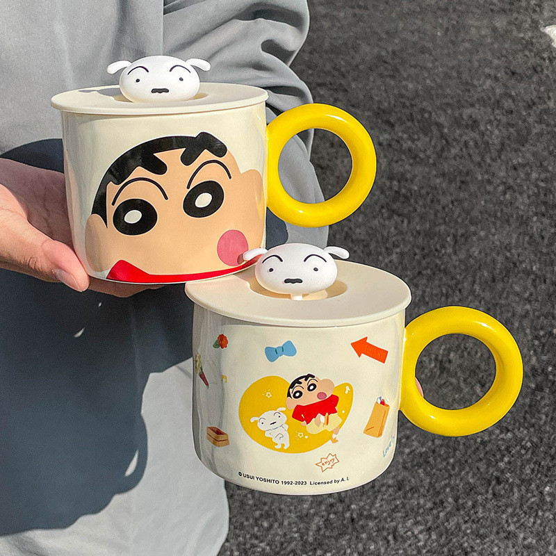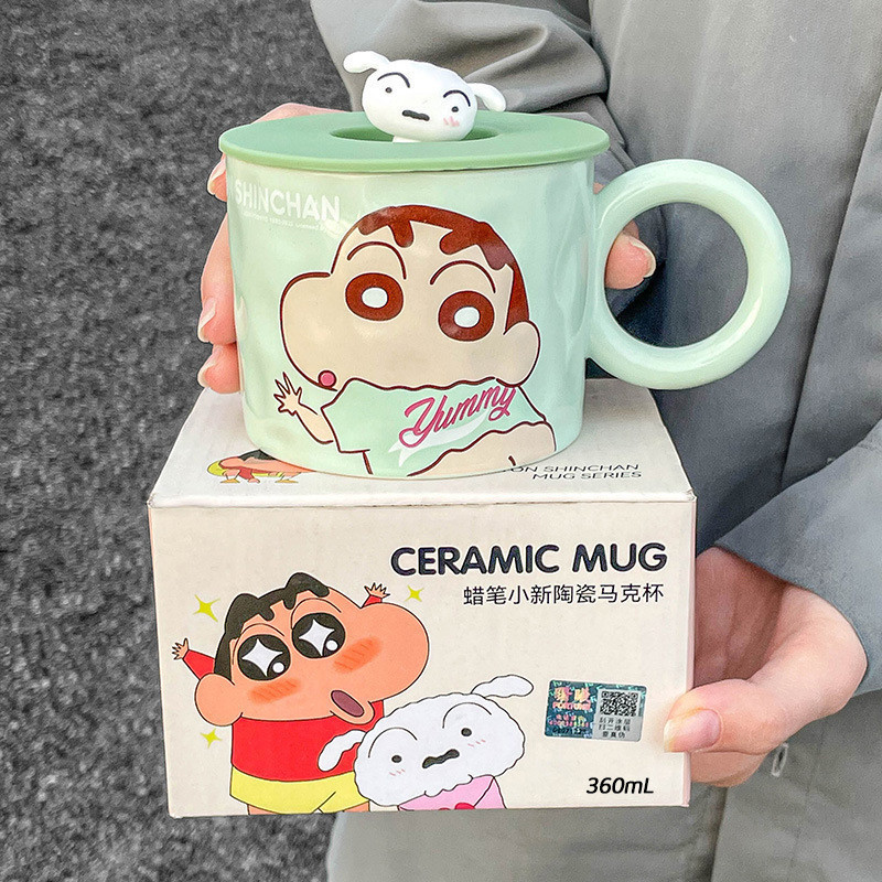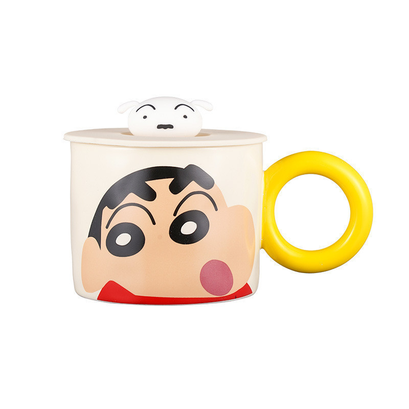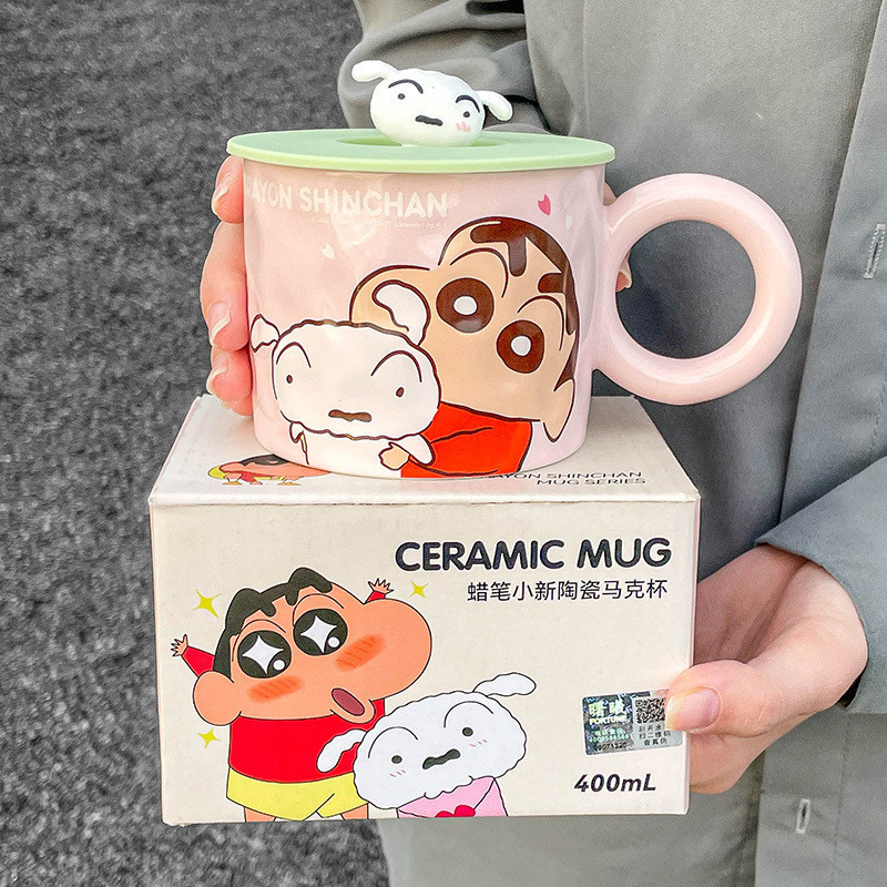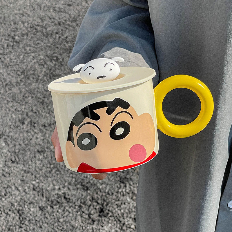 [พร้อมส่ง] แก้วน้ําเซรามิค ลายการ์ตูนชินจังน่ารัก พร้อมฝาปิด สําหรับสํานักงาน
