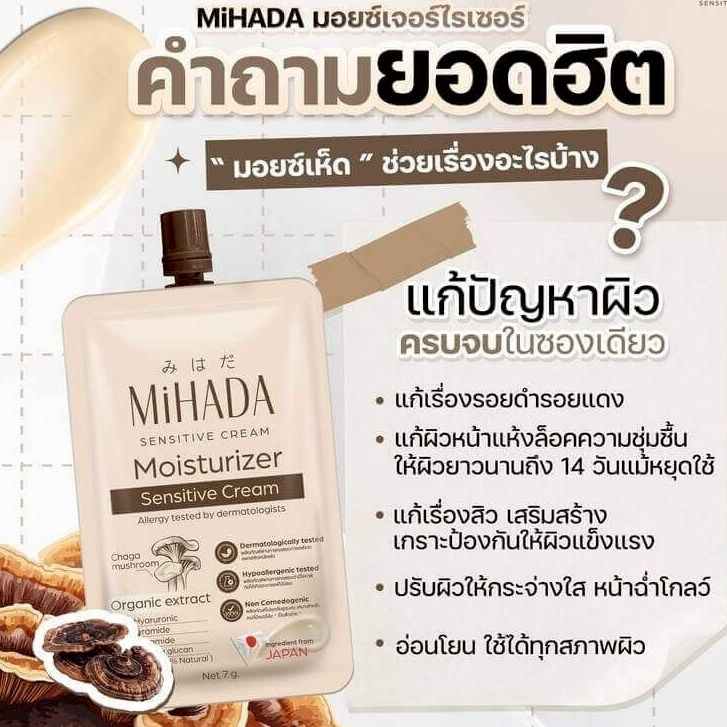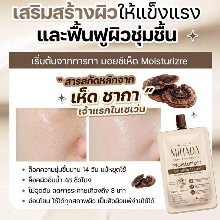 (กล่อง 6 ซอง) Mihada Moisturizer Sensitive Cream มิฮาดะ มอยส์เจอร์ไรเซอร์เห็ด (7 g.)