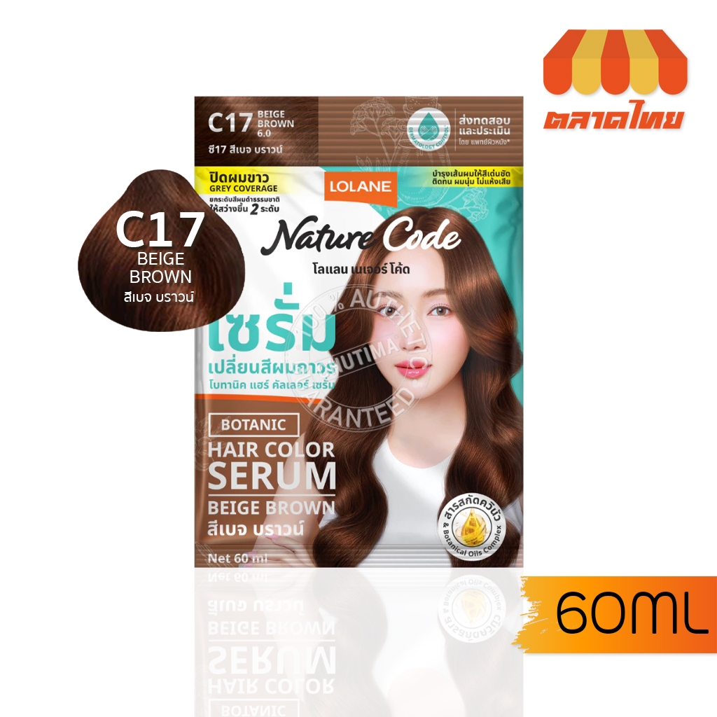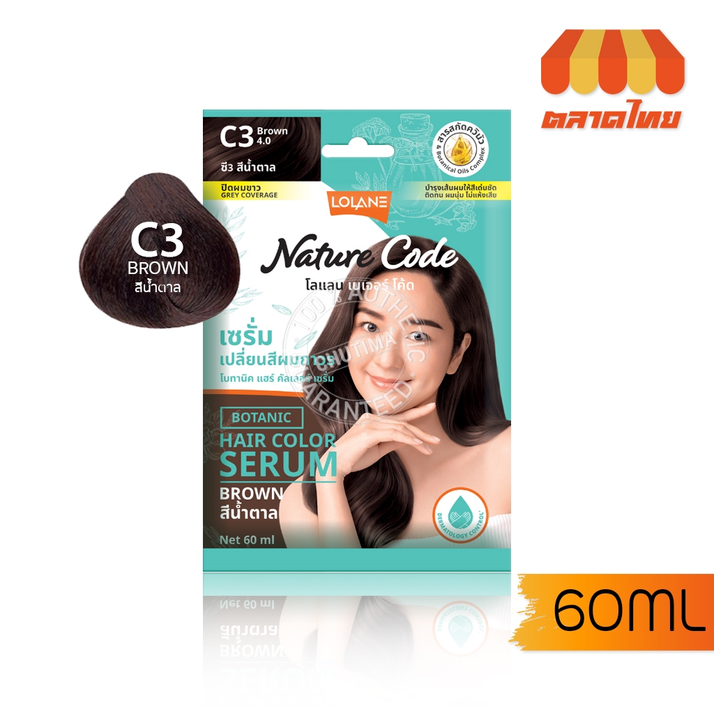 (ครบทุกสี) โลแลน เนเจอร์ โค้ด เซรั่มเปลี่ยนสีผมถาวร ปิดผมขาว Lolane Nature Code Botanic Hair Color Serum 60 ml.