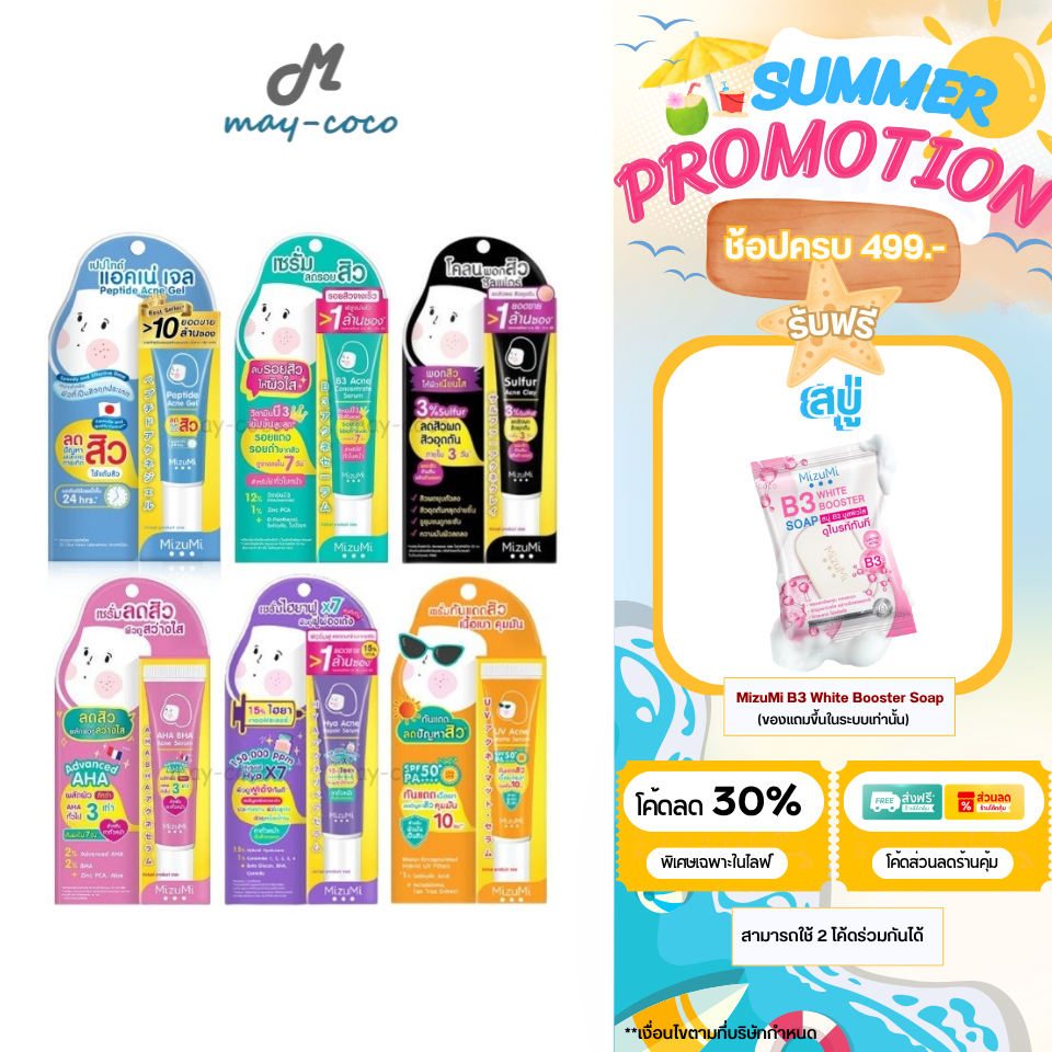 ถูก/แท้/มีไลฟ์ (หลอด) เจลแต้มสิว MizuMi เซรั่มลดรอยสิว MizuMi มิซึมิ Peptide Acne Gel B3 Acne Concentrate Serum