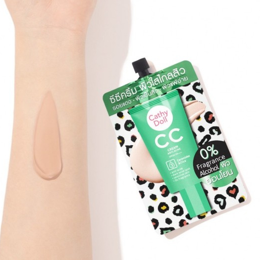 【1ซอง】ครีมรองพื้น ซิก้า【ซีซีครีมแอนตี้แอคเน่】สีเขียว Cathy Doll CC Cream Anti Acene SPF50 Pa+++