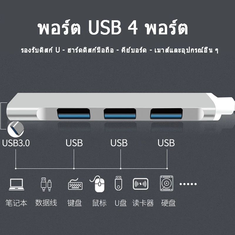 USB ความเร็วสูง 4 พอร์ต HUB USB 3.0 Type-C Adapter สำหรับ PC และแล็ปท็อป