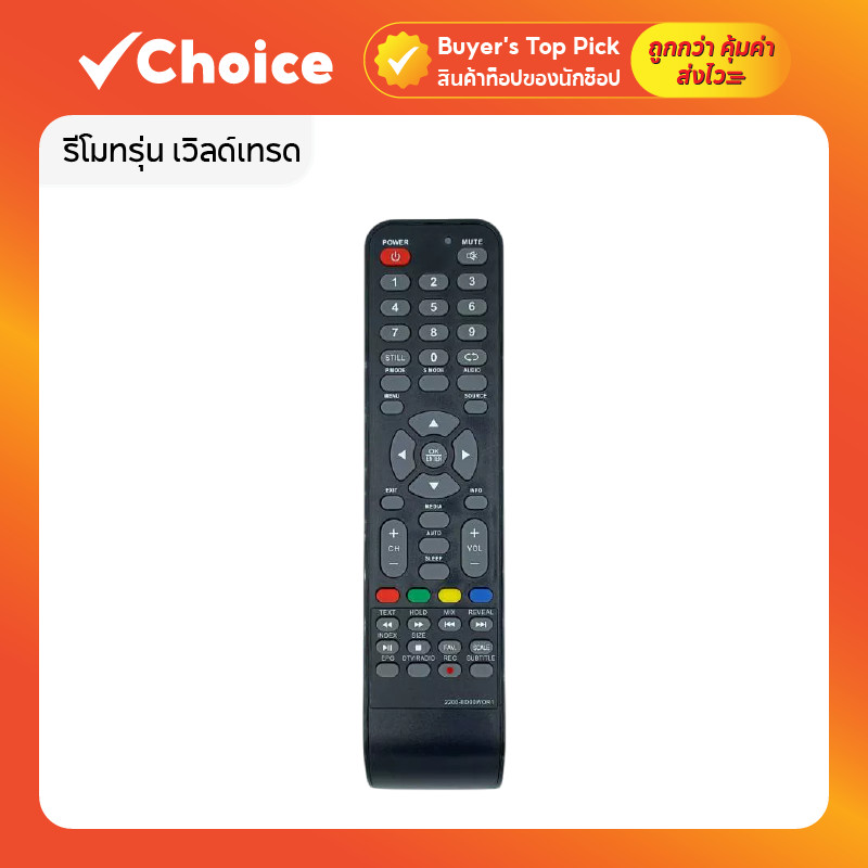 รีโมท Worldtech 📺 รหัส 2200-ED00WOR1 | สำหรับโทรทัศน์จอ LCD/LED | ใช้ได้ทันที ไม่ต้องตั้งค่า