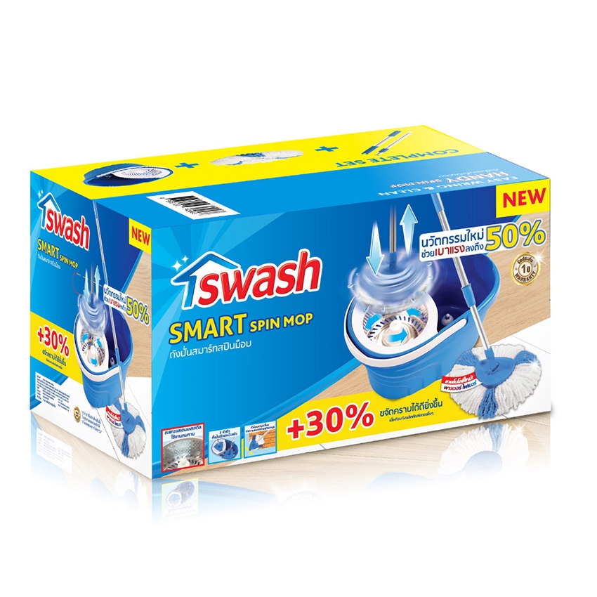 สวอช ไม้ม็อบพร้อมถังปั่น แฮนดี้สปินม็อบ SWASH EASYWRING+CLEAN HANDY SPINMOP