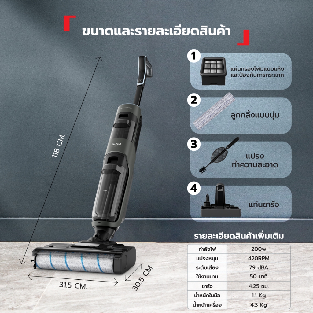 Tefal เครื่องดูดฝุ่น และถูพื้นแบบไร้สาย X-CLEAN 4 GF5035 รุ่น GF5035F0