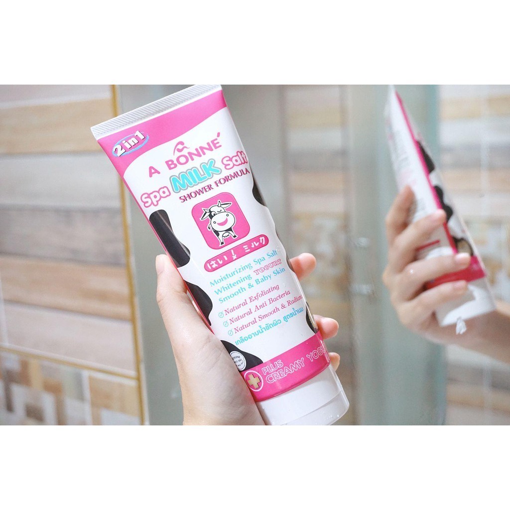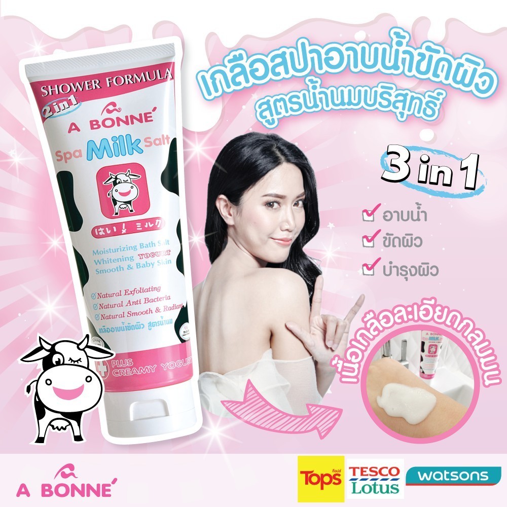 (แบบหลอด) เอ บอนเน่ เกลือขัดผิว สูตรน้ำนม เกลืออาบน้ำขัดผิว เนื้อละเอียด ไม่บาดผิว A Bonne Spa Milk Shower Salt 350 มล.