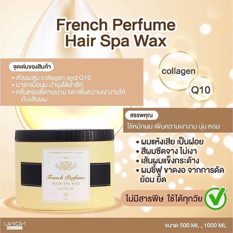 ☀ยูเนี่ยน บิวตี้ ฝาดำ ทรีทเม้นท์ แว๊กซ์น้ำหอม Union Beauty French Perfume Hair Spa บำรุงผมเสีย นุ่มสลวย มีน้ำหนัก เงางาม