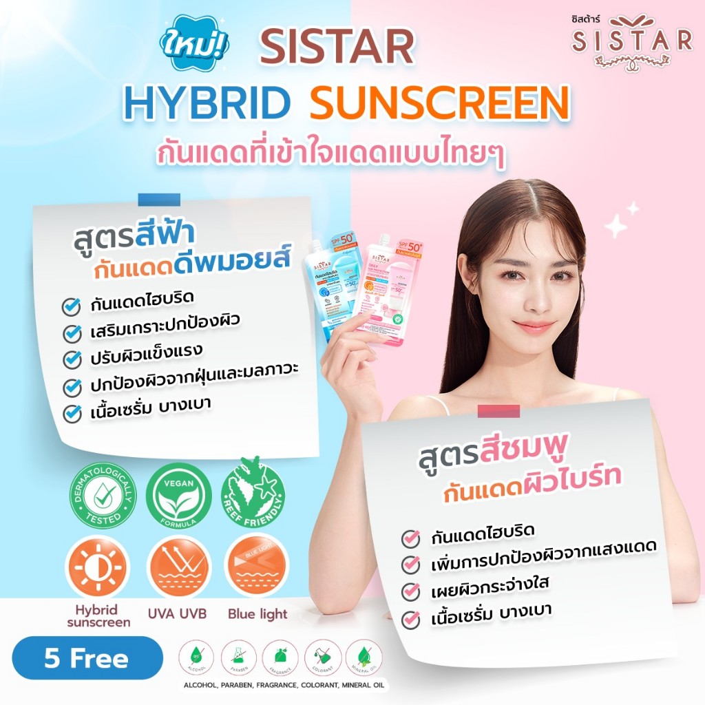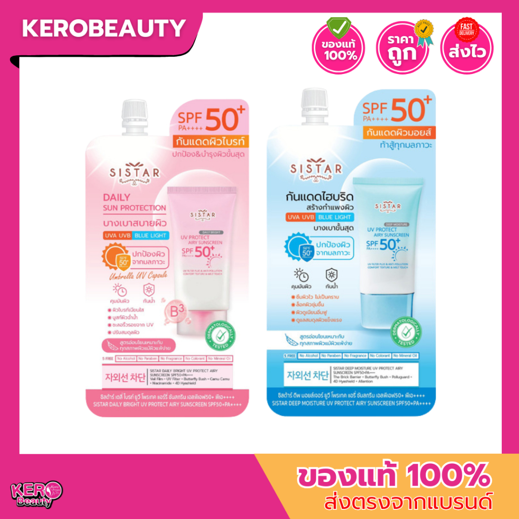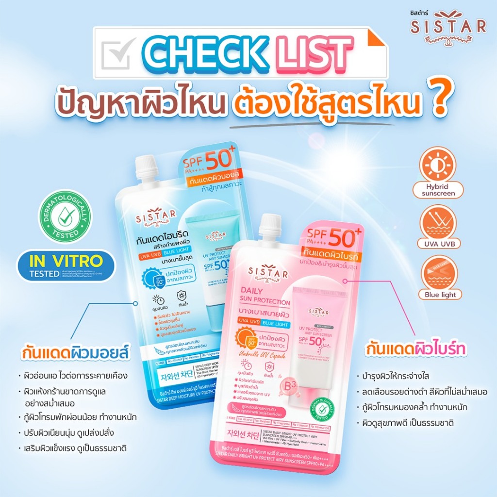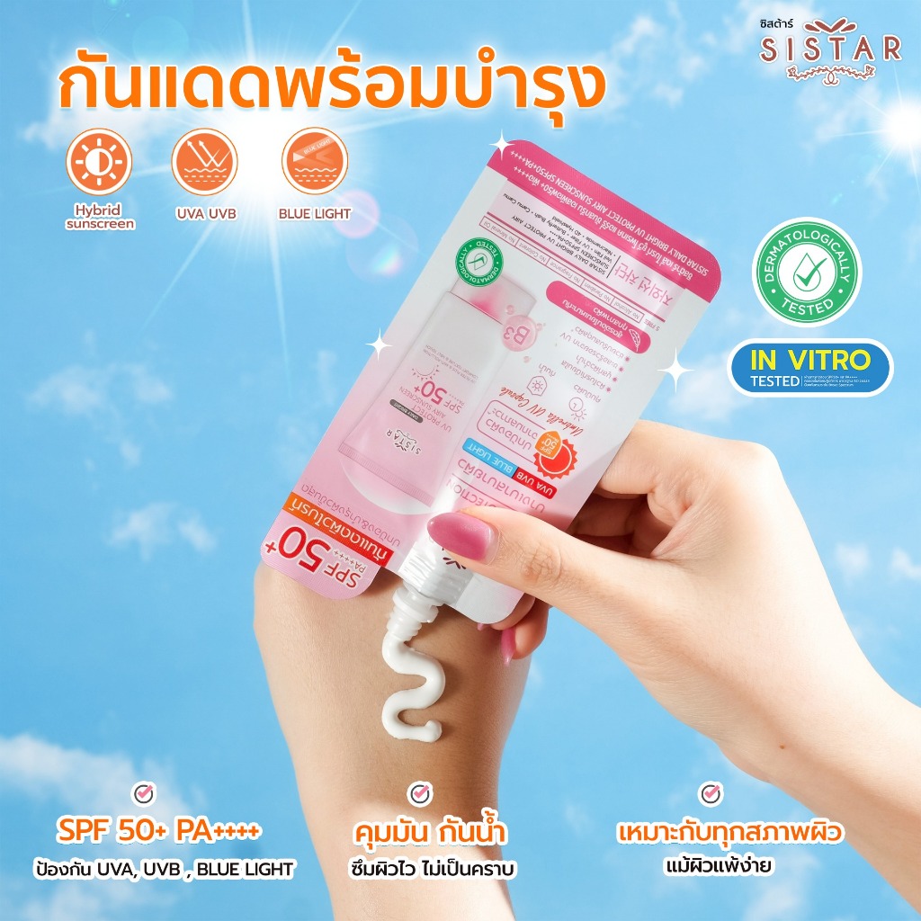 (ซอง) ซิสต้าร์ Sistar Sunscreen SPF50+ PA++++ 10g. #กันแดดไฮบริด 2 สูตร เนื้อบางเบา ซึมไว ปกป้อง พร้อมบำรุง