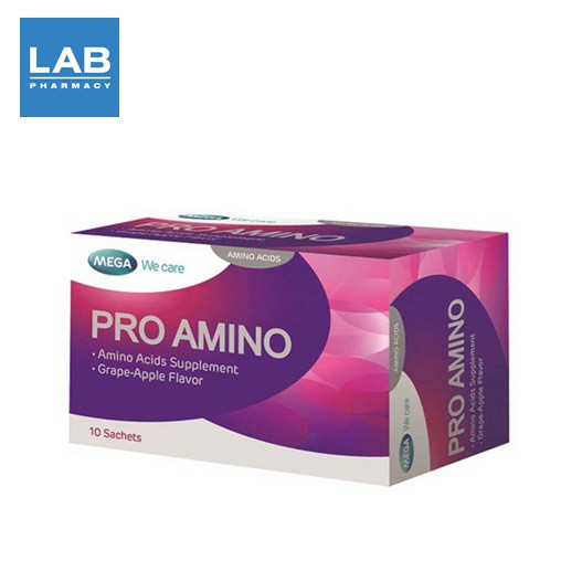 MEGA We Care Pro amino 10 sachets - เมก้า วีแคร์ โปร อะมิโน ผลิตภัณฑ์เสริมอาหารช่วยเสริมการสร้างโกรทฮอร์โมน 10 ซอง