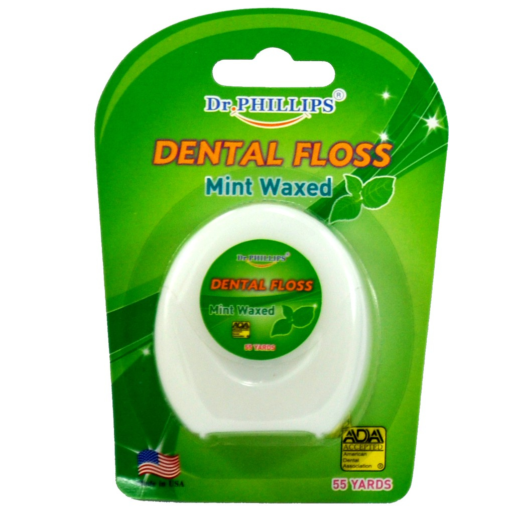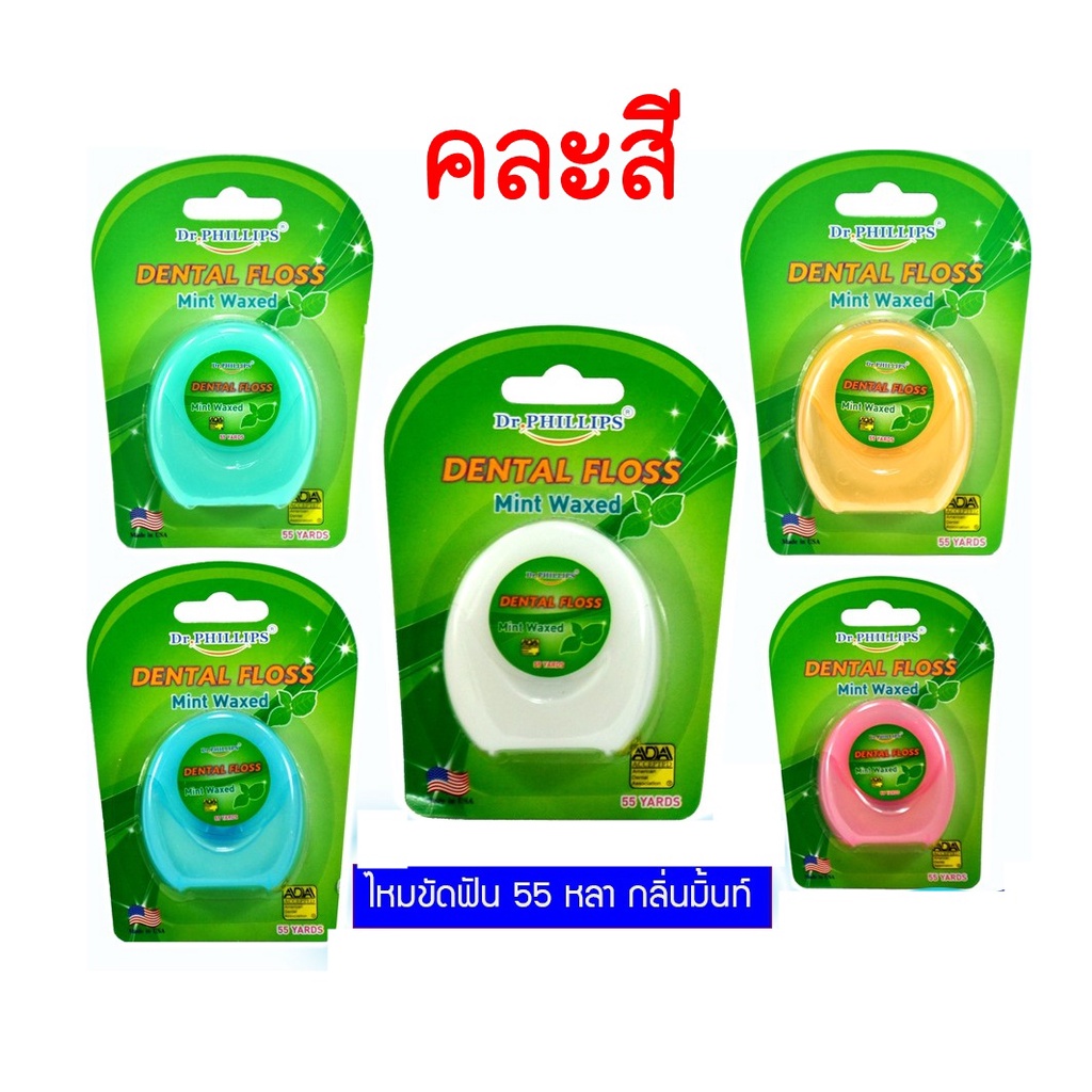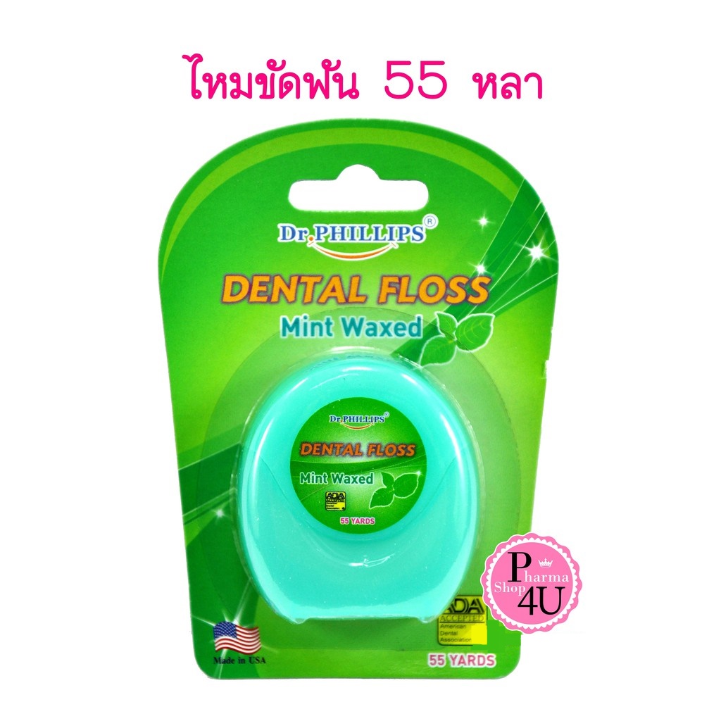 Dr.phillips ไหมขัดฟัน 55 หลา กลิ่นมิ้นท์ ไหมขัดฟันชนิดเส้นมาตรฐาน เคลือบแว็กซ์ผสมกลิ่นมิ้นท์