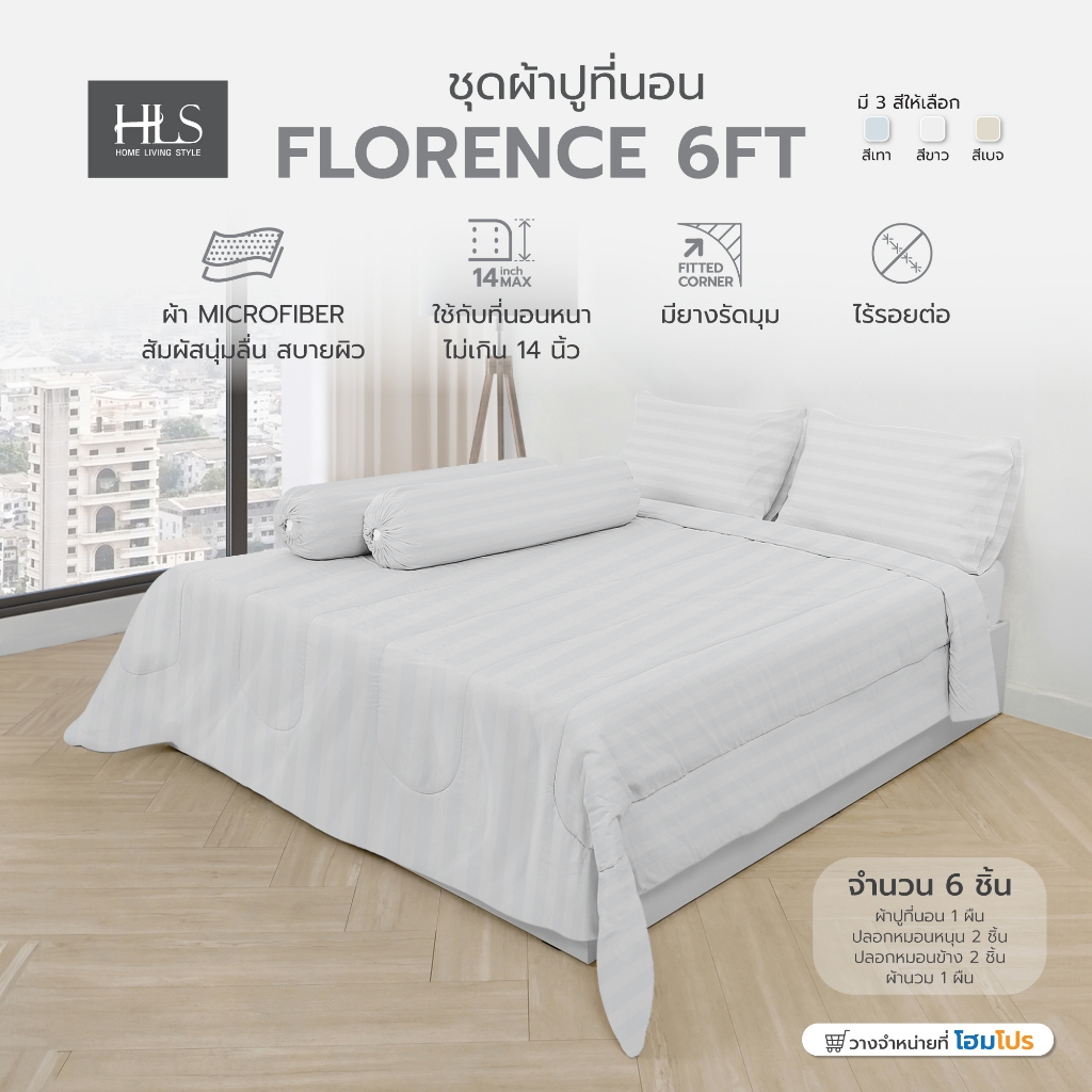 HOME LIVING STYLE ชุดผ้าปูที่นอน 6 ฟุต 6 ชิ้น HOME LIVING STYLE FLORENCE สีขาว จัดส่งโดย HomePro