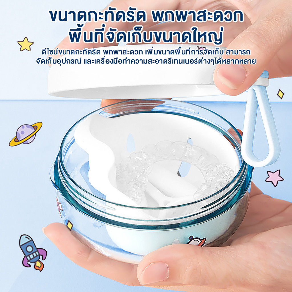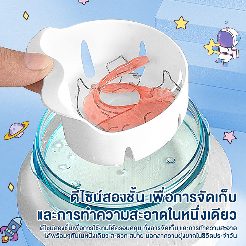กล่องรีเทนเนอร์ 2 ชั้น กล่องจัดฟันพร้อมกระจก สองชั้น แปรงฟรี กันน ้ำ พกพาง่าย