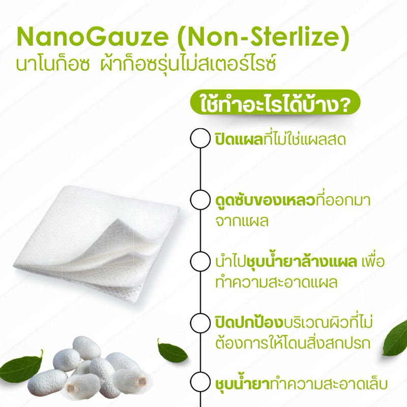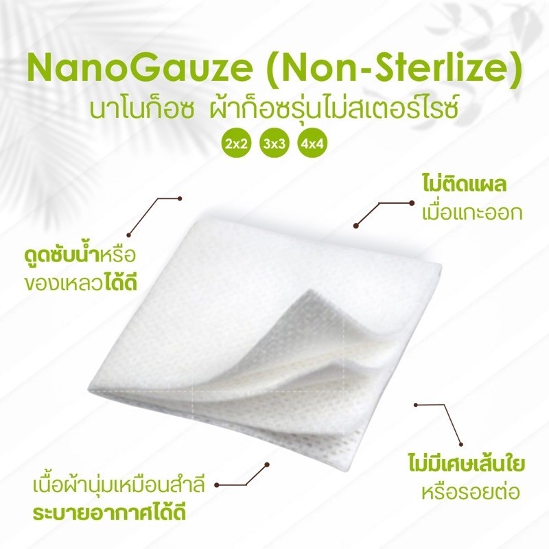 Nano Gauze 3x3 10 pcs. นาโน กอซ ขนาด 3x3 นิ้ว 10 ชิ้น/ซอง ผ้าก๊อซชนิดพิเศษ ไม่ติดแผล ไม่หลุดลุ่ย 3 นิ้ว