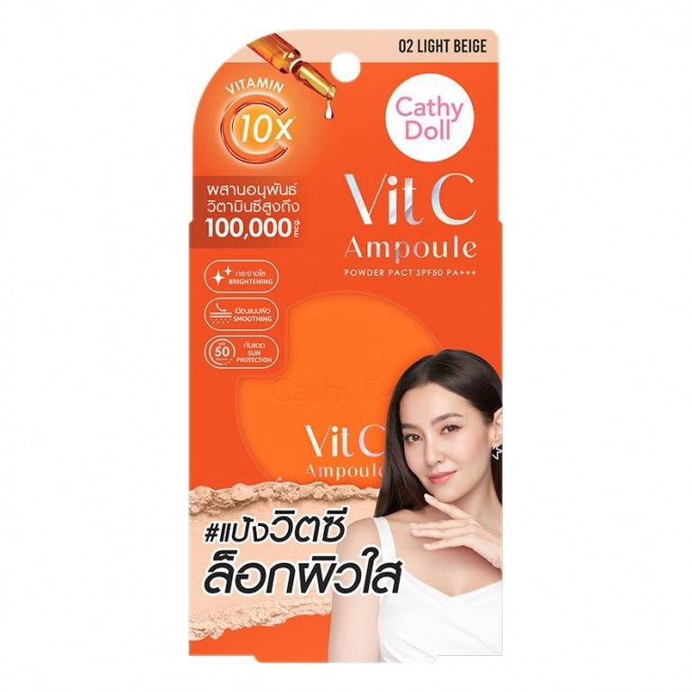 Cathy Doll Vit C Ampoule Powder Pact SPF50 PA+++ 6 g วิตซีแอมพูลพาวเดอร์แพ็ค เอสพีเอฟ50 พีเอ+++ 6g #02 ไลท์เบจ