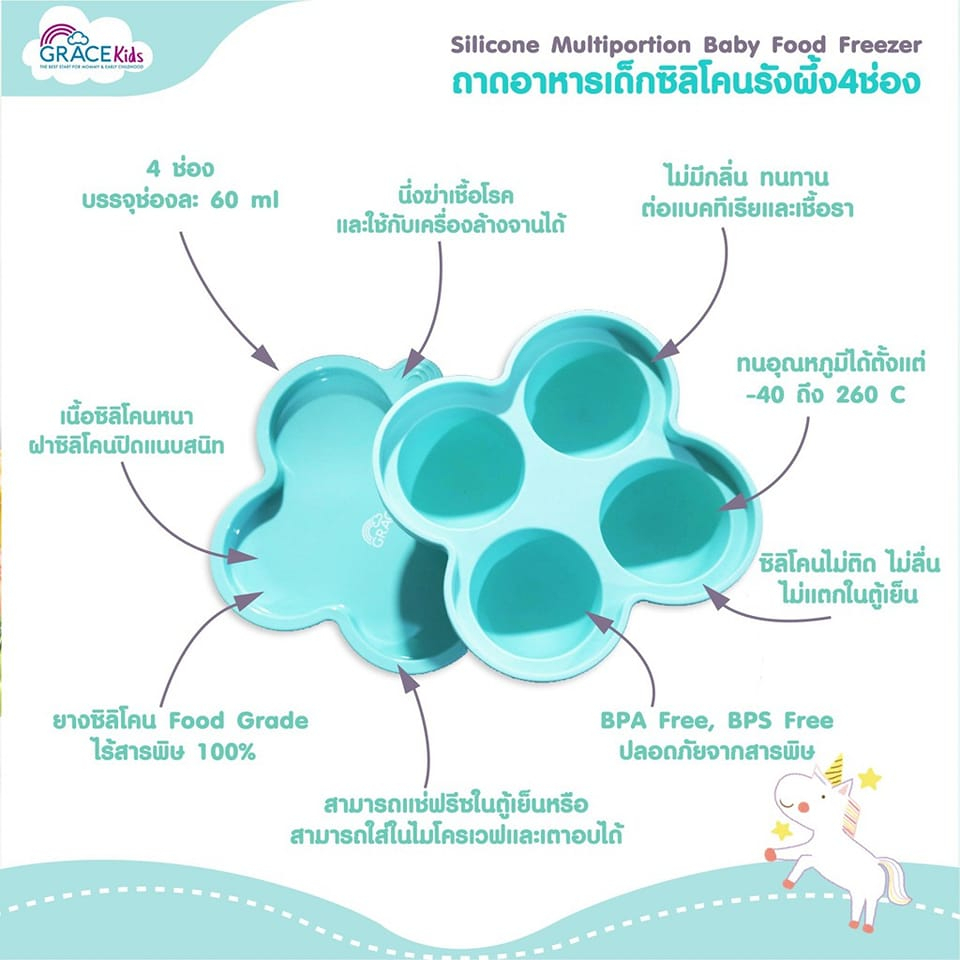 Grace Kids บล็อคซิลิโคนทรงรังผึ้ง 7 ช่อง ทำจากซิลิโคนคุณภาพสูง เนื้อซิลิโคนหนา ฝาซิลิโคนปิดแนบสนิท