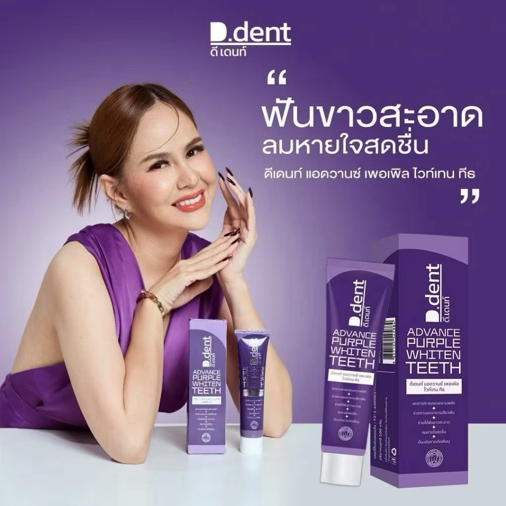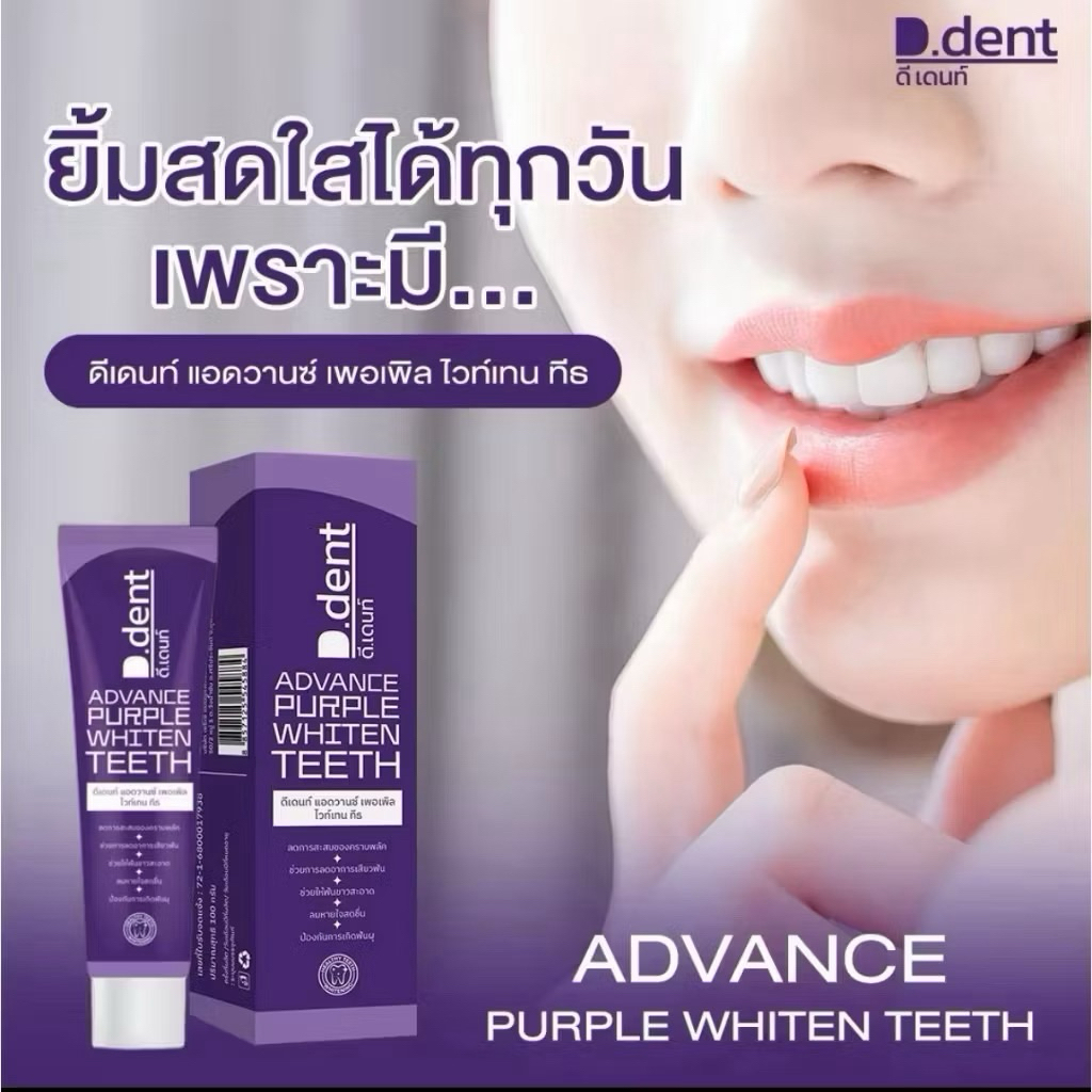 ส่งฟรี/มีไลฟ์ (หลอด)ยาสีฟันดีเด้น (ม่วง) D.dent Advavce Purple Whiten Teeth 100กรัม