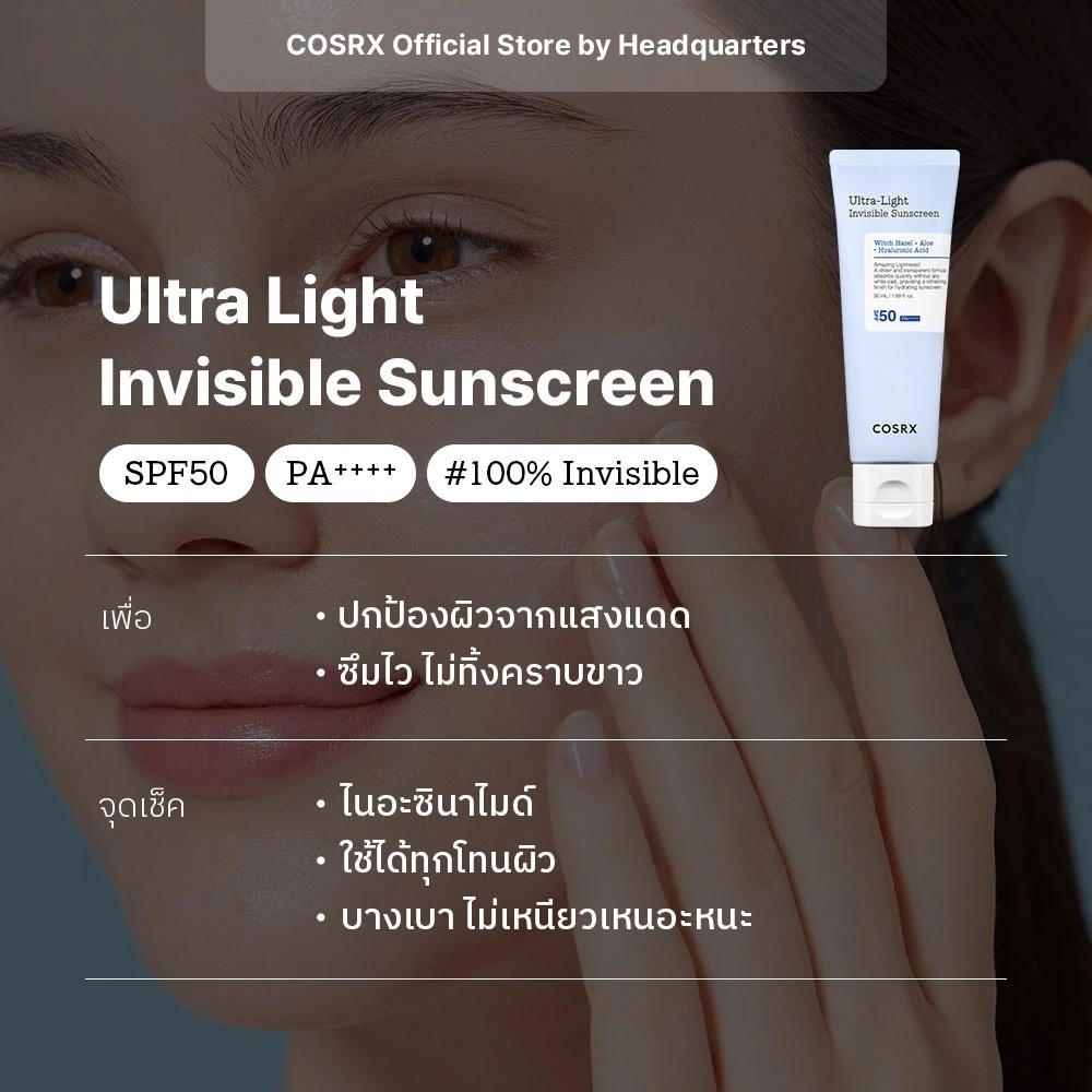 COSRX Ultra-Light Invisible Sunscreen SPF50+ PA++++ 50ml คอสอาร์เอ็กซ์ ครีมกันแดดเนื้อเซรั่ม.
