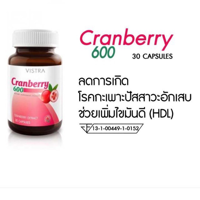 Vistra Cranberry Extract 600mg. ขวด 30 แคปซูล