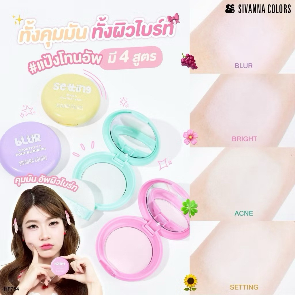 HF754 Sivanna ซีเวนน่า คัลเลอร์ส ออยล์ คอนโทรล เจนเทิล แคร์ พาวเดอร์ แป้งพัฟ 4เฉดสี ขนาด 4 กรัม